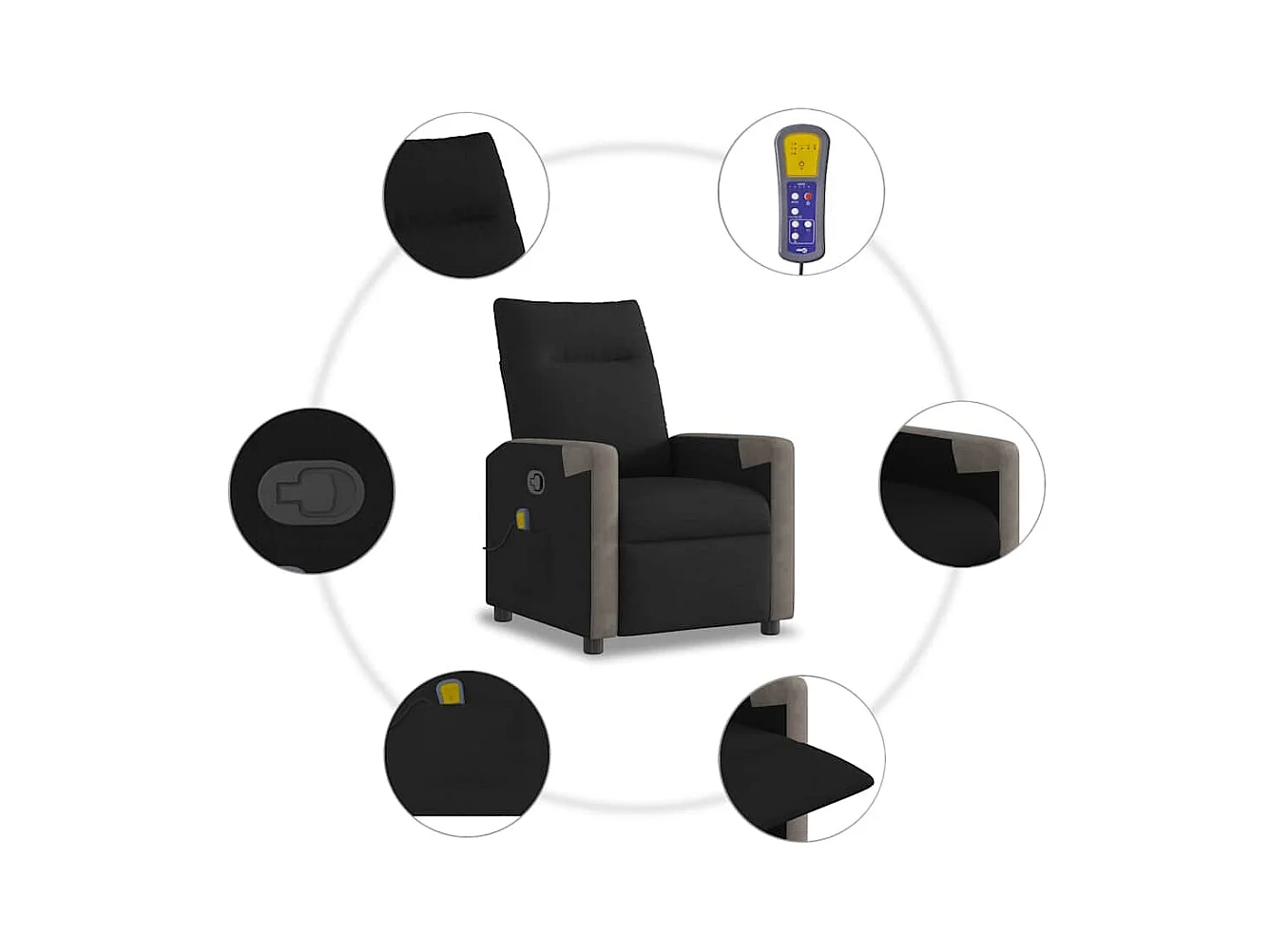 Sillón de relax | Sillón reclinable de masaje elevable tela negro SHL3520