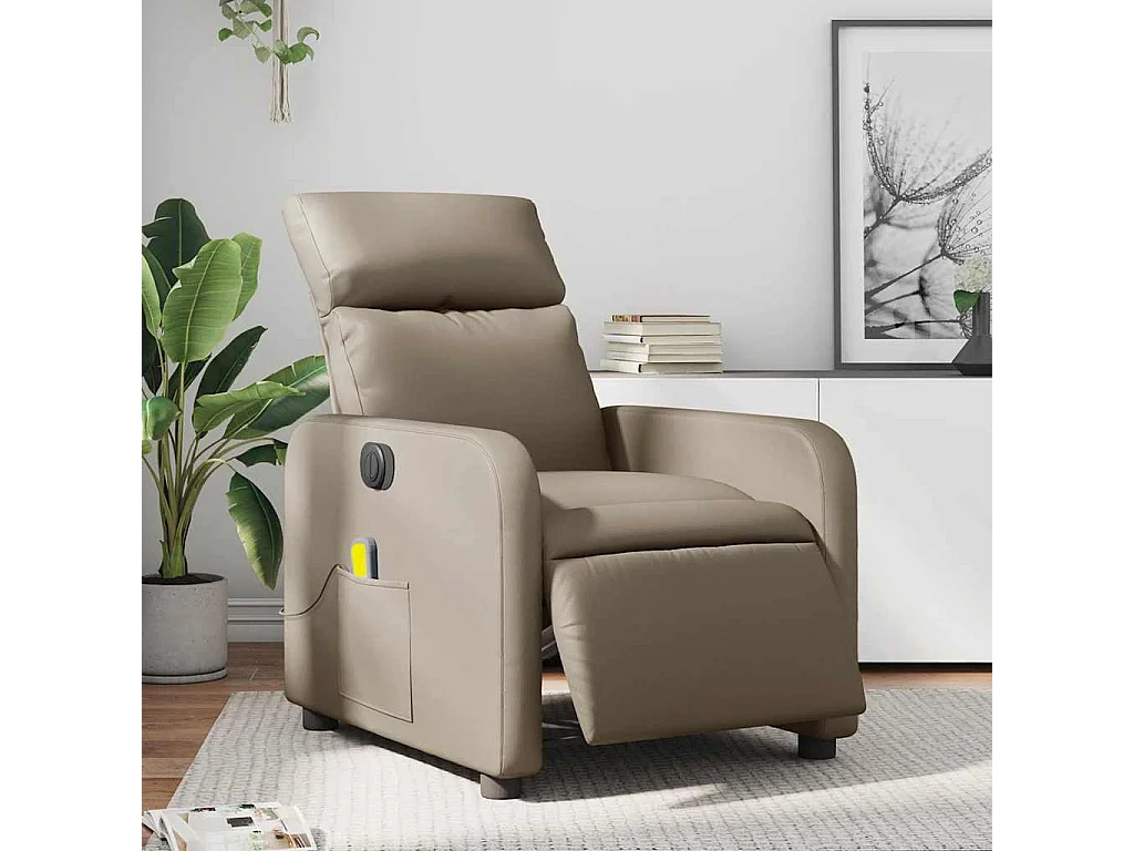 Sillón de relax | Sillón reclinable masaje pie cuero artificial color capuchino SHL3341
