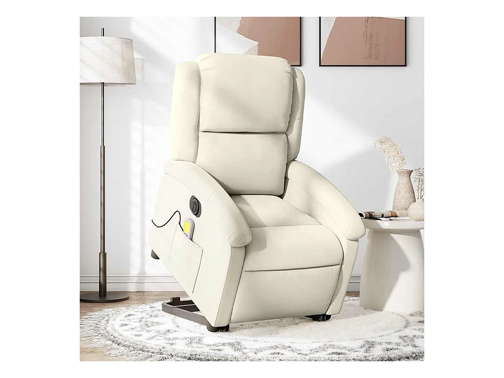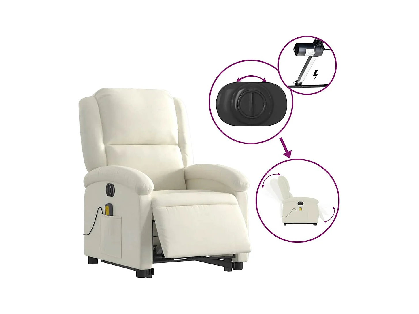 Sillón de relax | Sillón reclinable de masaje eléctrico elevable terciopelo crema SHL5721