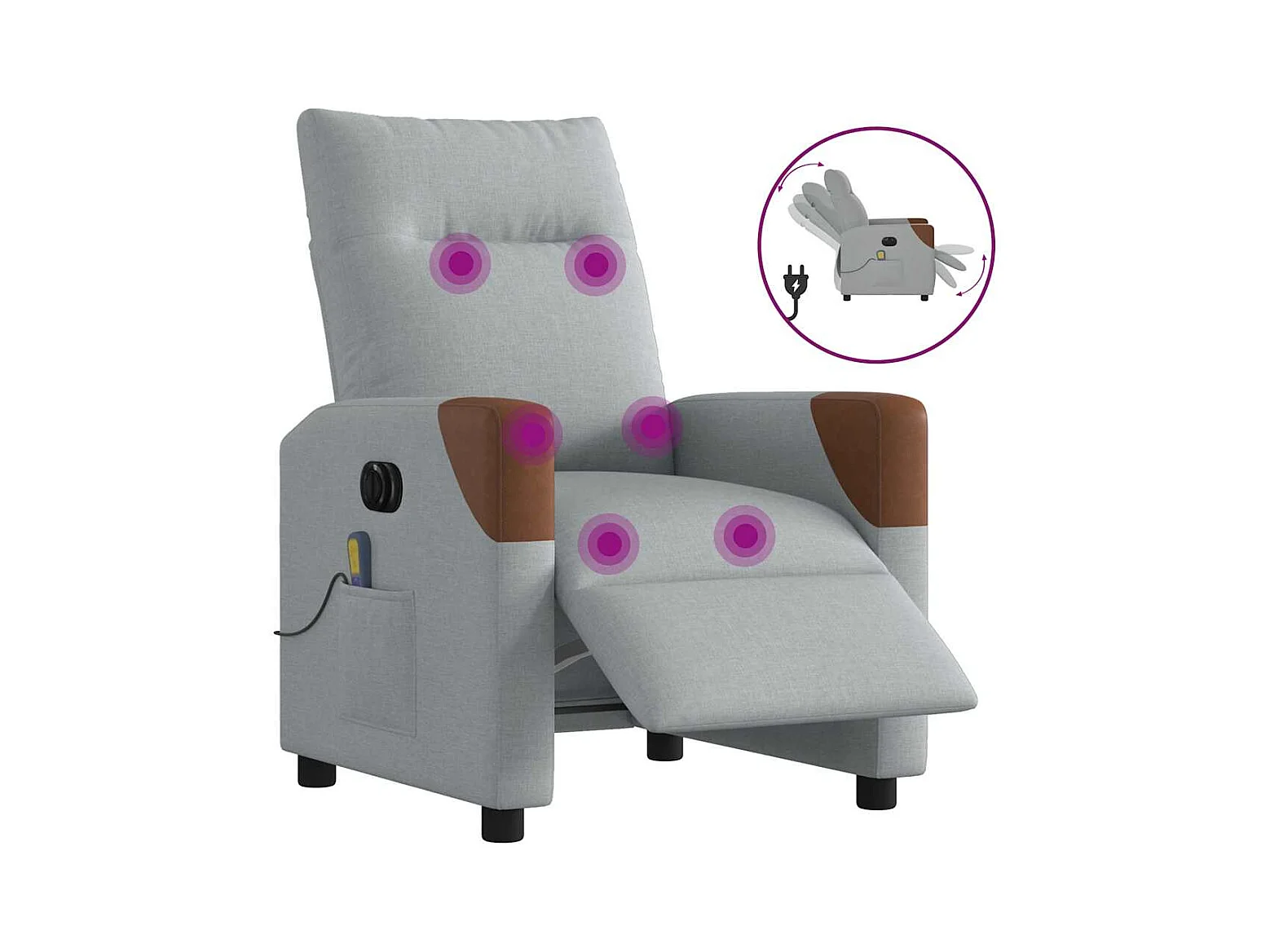 Sillón de relax | Sillón reclinable de masaje eléctrico tela gris claro SHL8572
