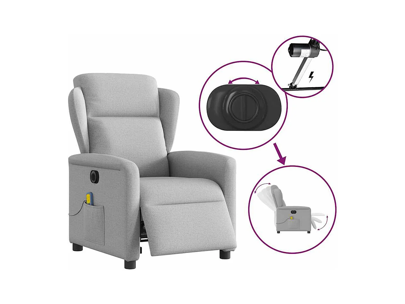 Sillón de relax | Sillón reclinable de masaje eléctrico tela gris claro SHL8638
