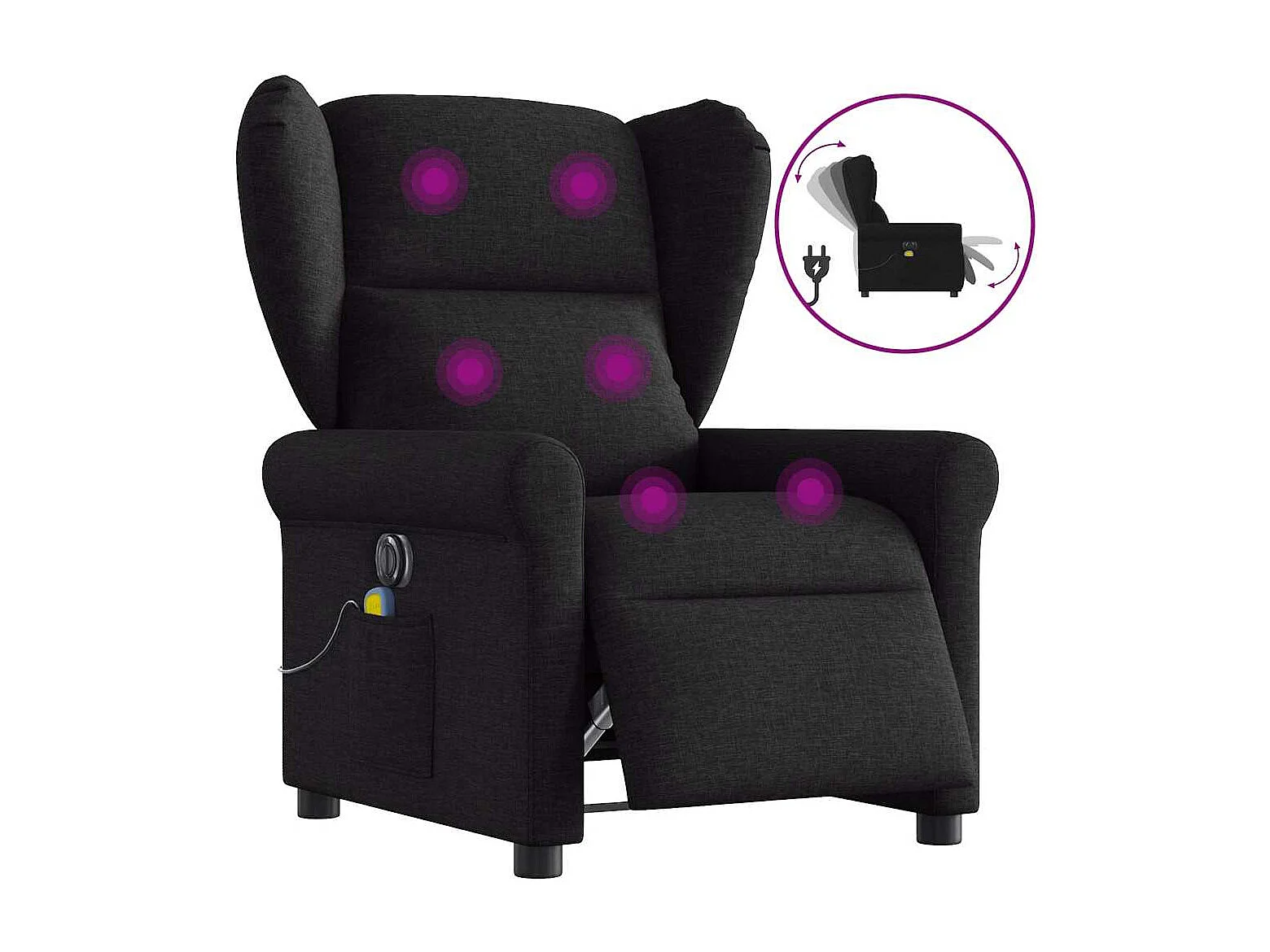 Sillón de relax | Sillón reclinable de masaje elevable tela negro SHL8414