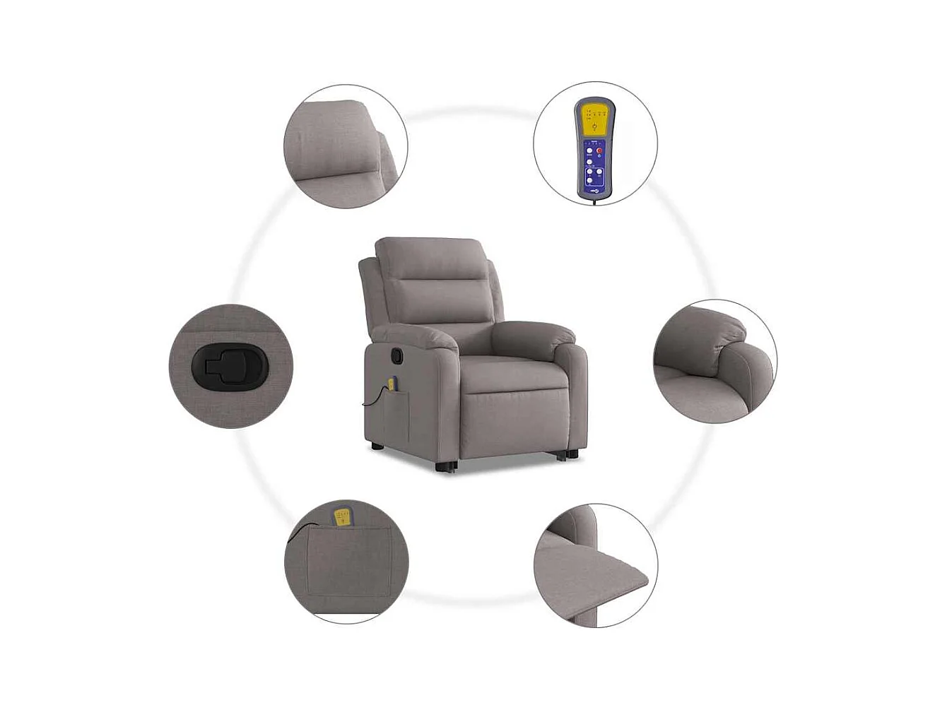 Sillón de relax | Sillón reclinable de masaje elevable tela gris taupé SHL3023