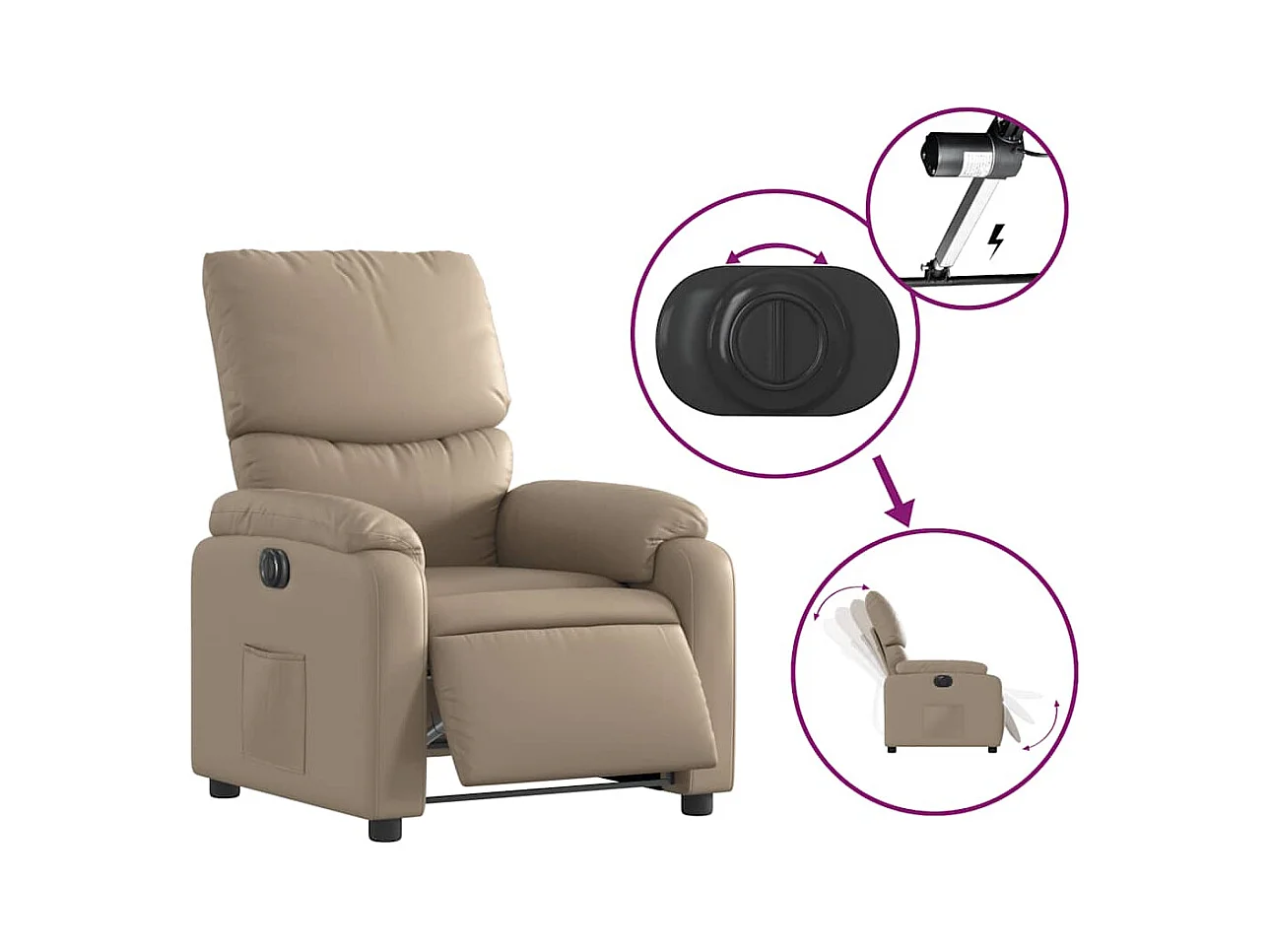 Sillón de relax | Sillón reclinable eléctrico de cuero sintético color capuchino SHL7652