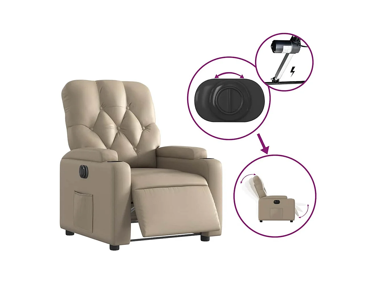 Sillón de relax | Sillón reclinable eléctrico de cuero sintético color capuchino SHL9837