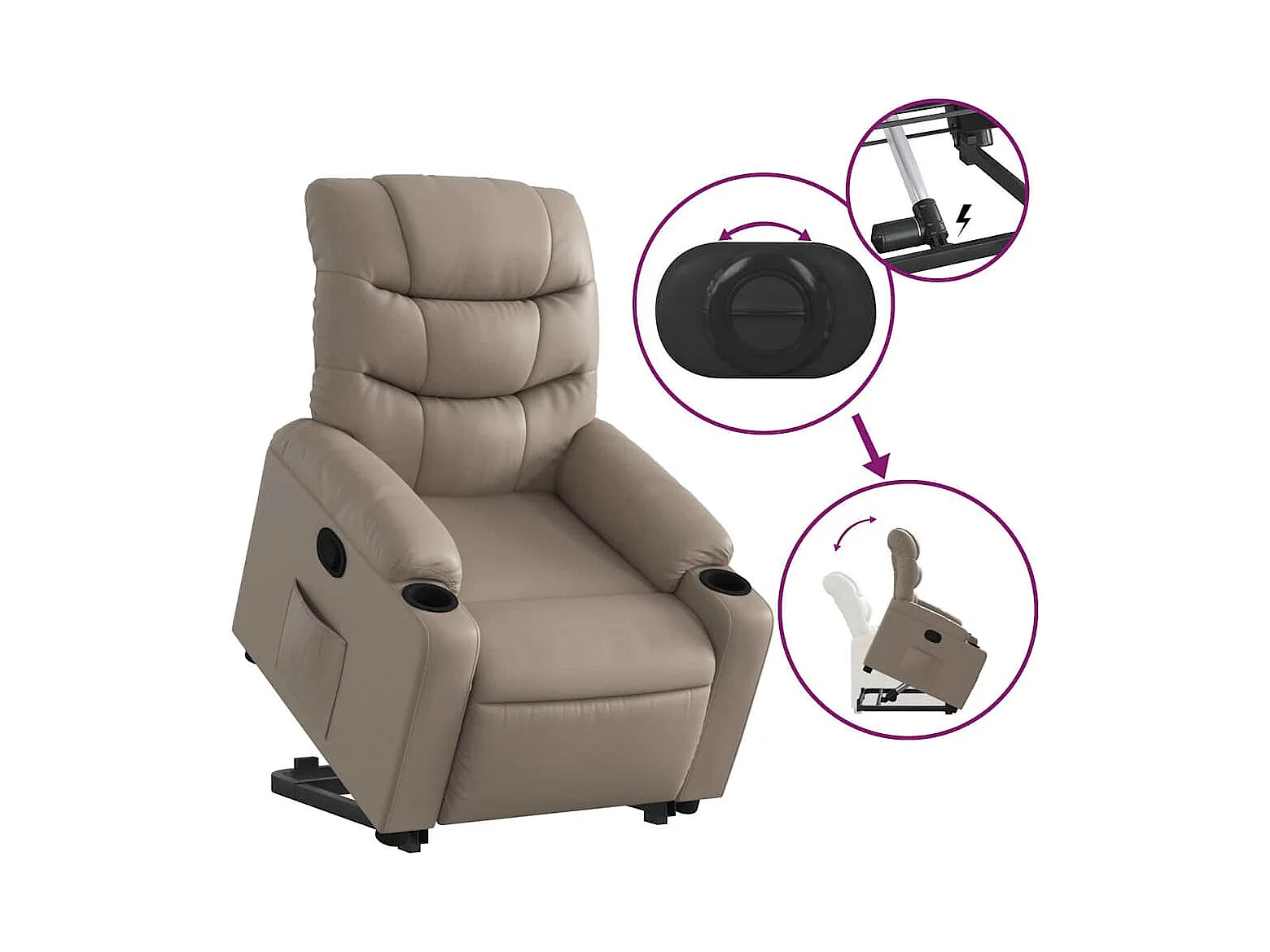 Sillón de relax | Sillón reclinable elevable cuero artificial color capuchino SHL8127