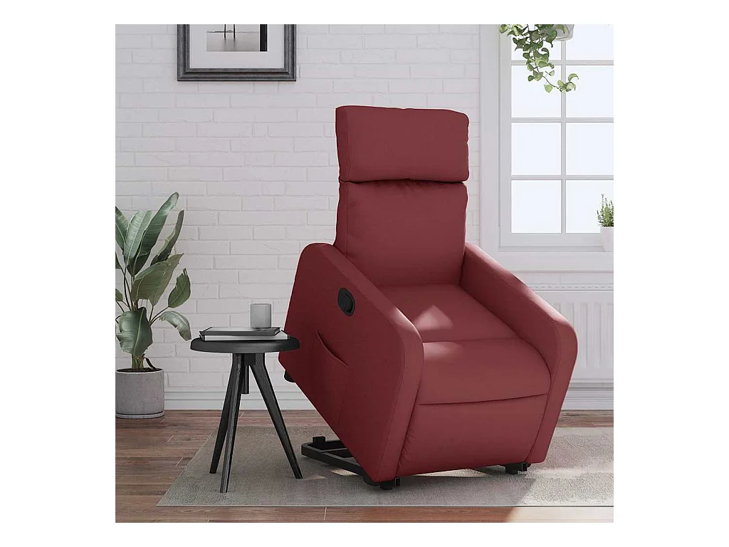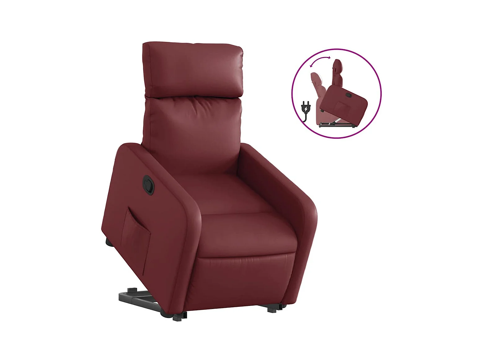 Sillón de relax | Sillón reclinable elevable cuero artificial rojo tinto SHL5476