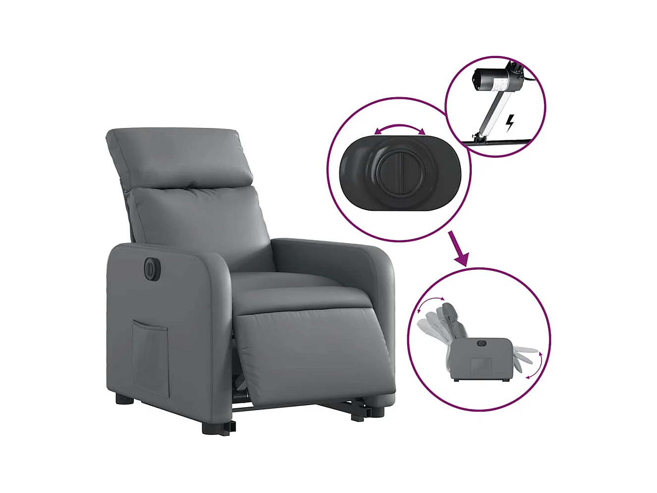 Sillón de relax | Sillón reclinable elevable eléctrico de cuero sintético gris SHL2247