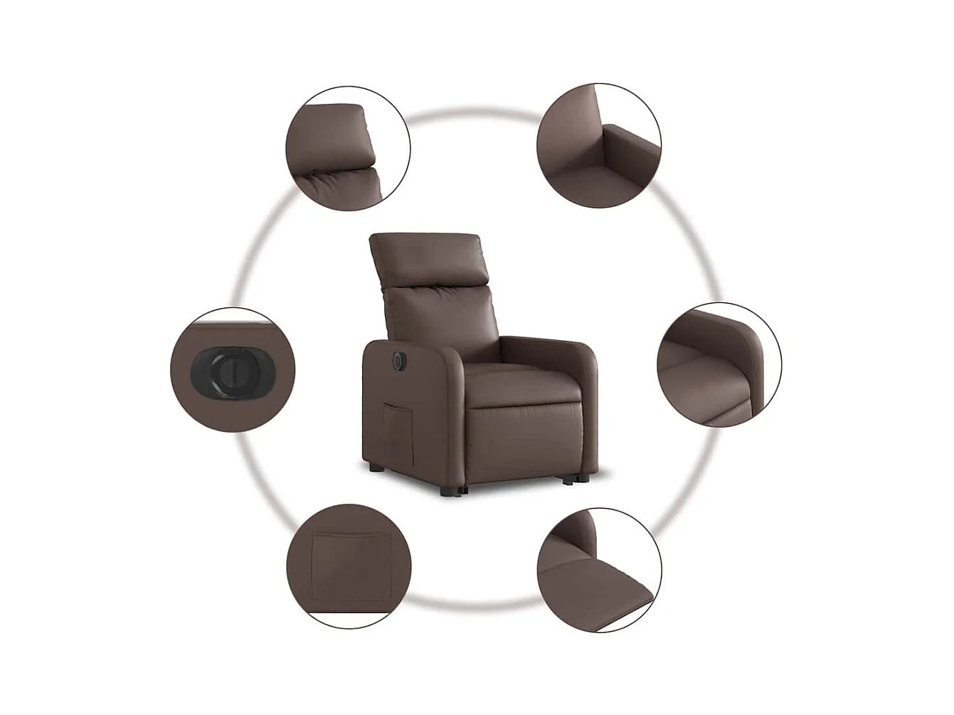 Sillón de relax | Sillón reclinable elevable eléctrico de cuero sintético marrón SHL7151