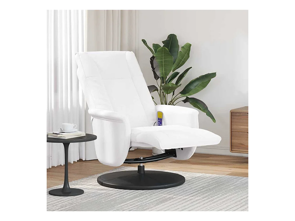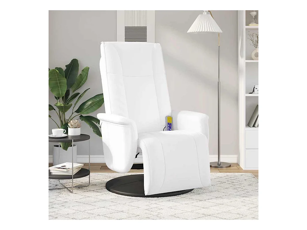 Sillón de relax | Sillón reclinable masaje con reposapiés cuero sintético blanco SHL7156
