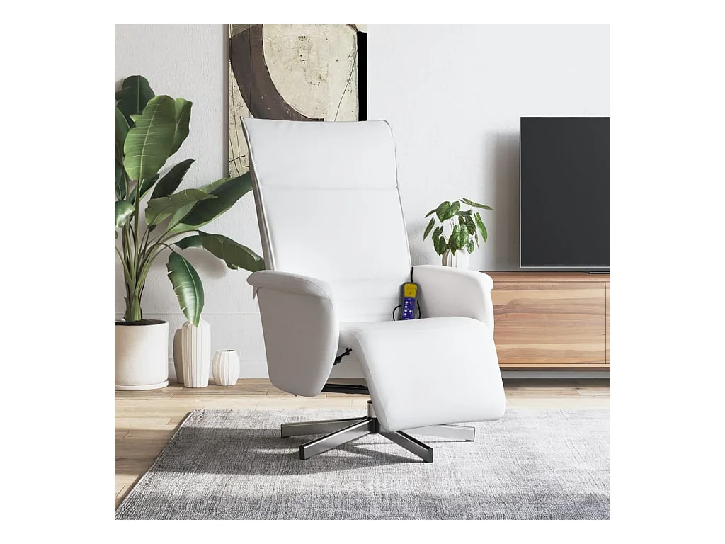 Sillón de relax | Sillón reclinable masaje con reposapiés cuero sintético blanco SHL7784