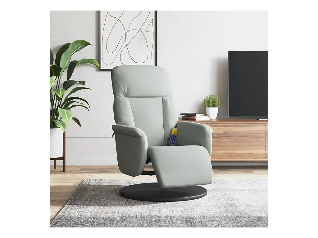 Sillón de relax | Sillón reclinable de masaje con reposapiés cuero sintético gris SHL9686