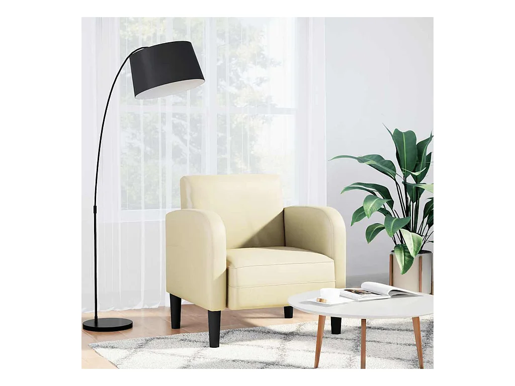 Sillón de salón con reposabrazos color crema 54 cm cuero sintética SHL3692