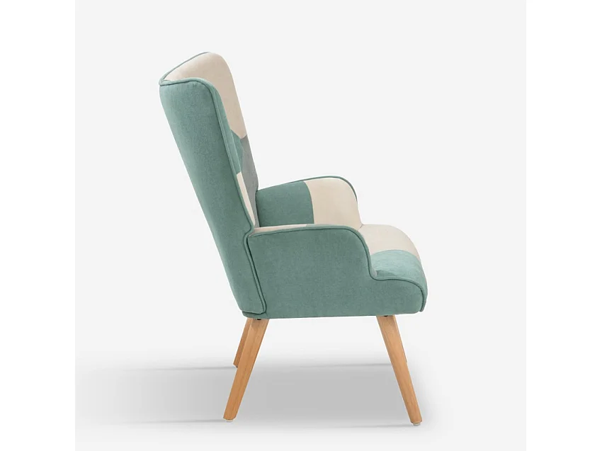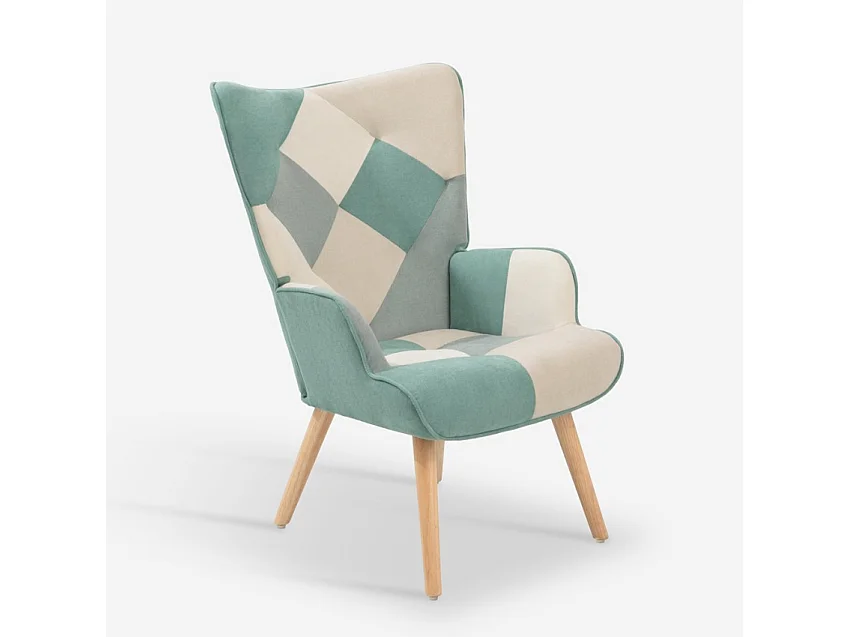 Sillón con taburete diseño Patchwork patas de madera de haya relax Patchy Plus