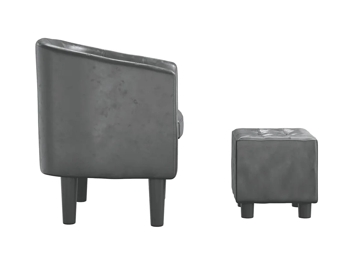 Sillón de salón | Silla de relax con taburete cuero sintético gris SHL8934