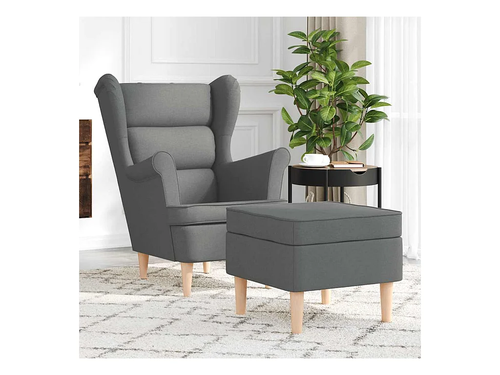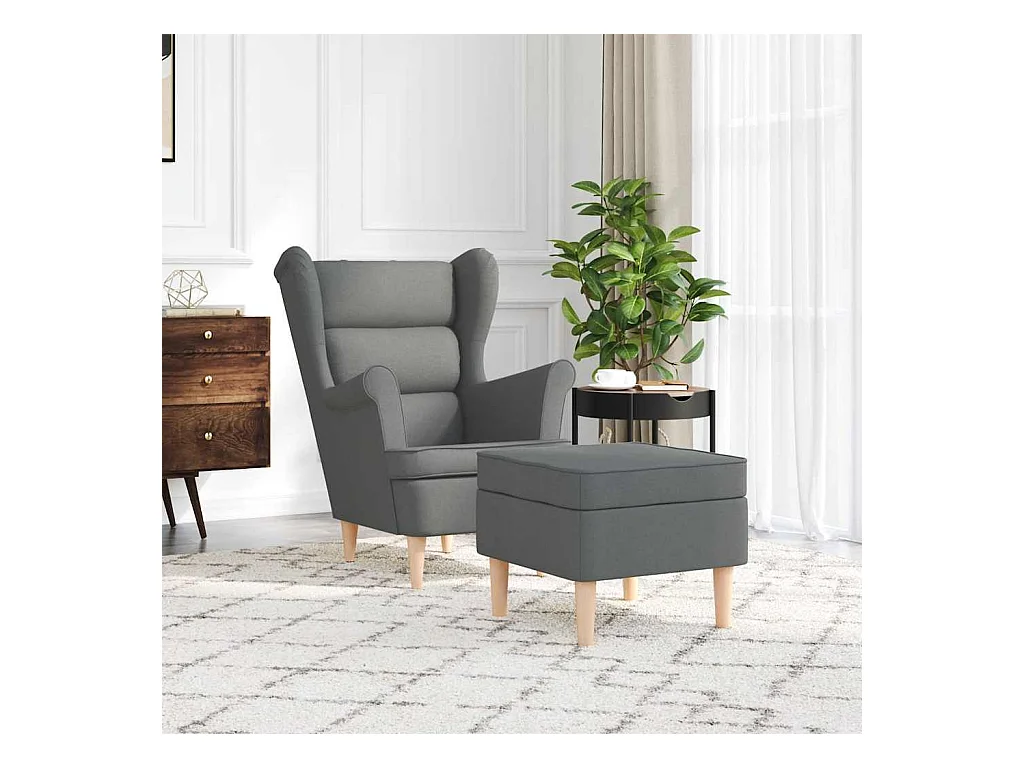 Sillón de salón | Silla de relax con taburete reposapiés tela gris oscuro SHL4834