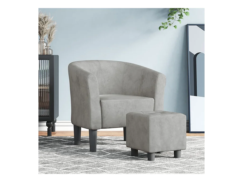 Sillón de salón | Silla de relax con taburete terciopelo gris claro SHL3956