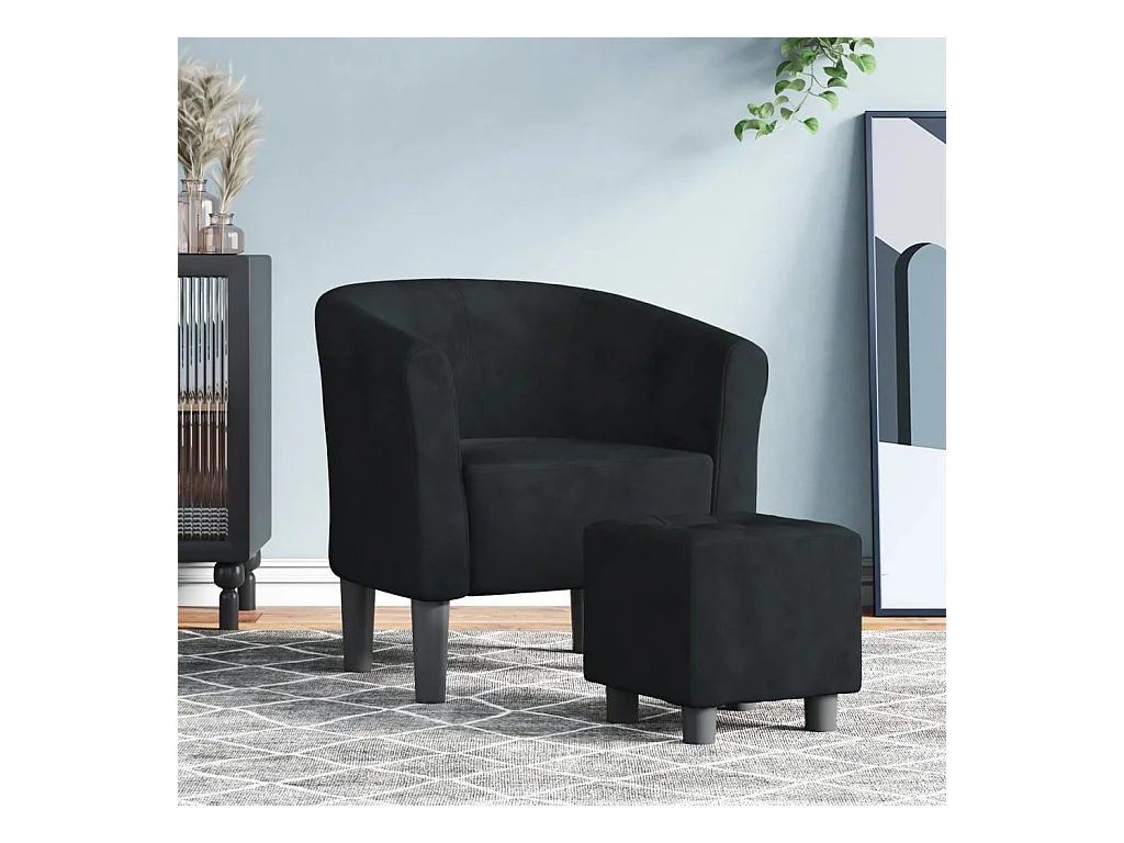 Sillón de salón | Silla de relax con taburete terciopelo negro SHL5514