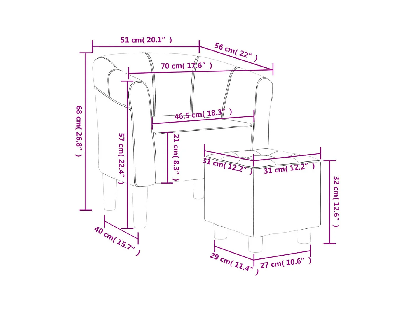 Sillón de salón | Silla de relax con taburete cuero sintético negro SHL2087