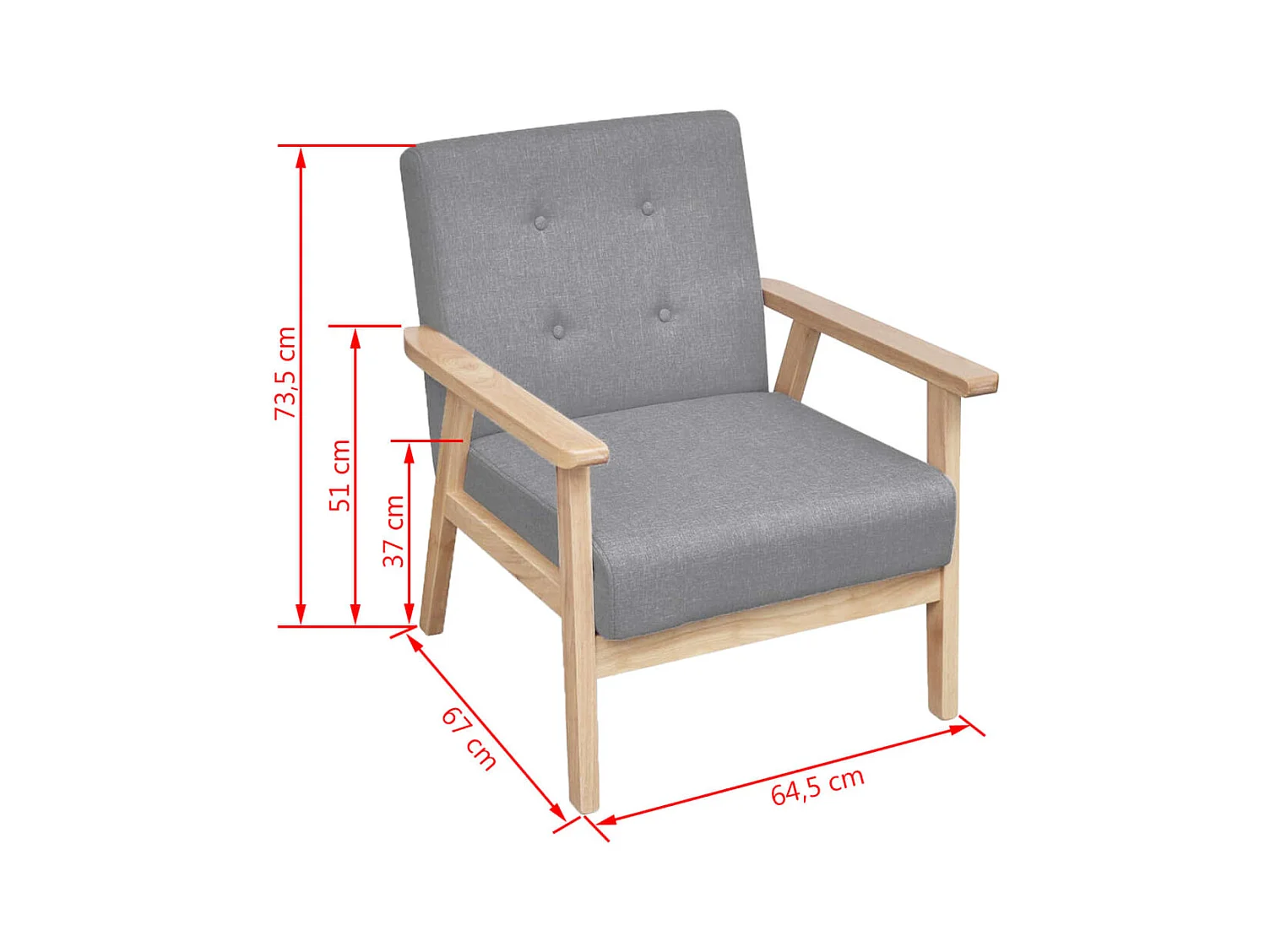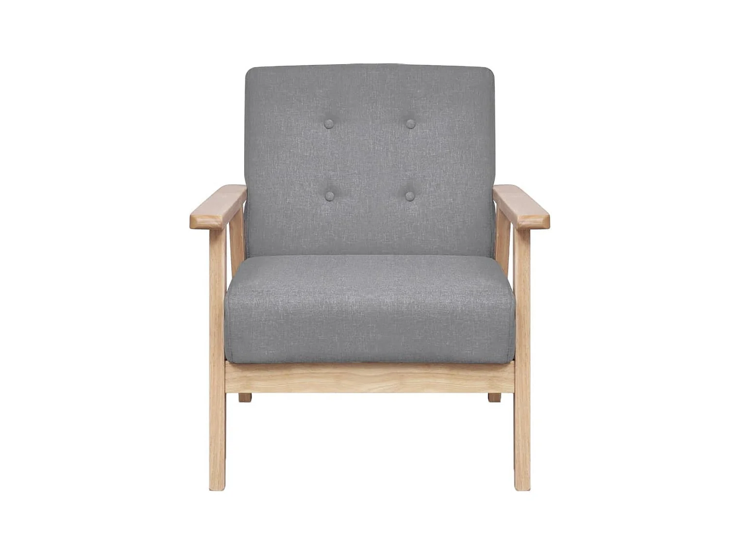 Sillón de salón con patas mecedoras madera maciza caucho tela gris claro SHL8038