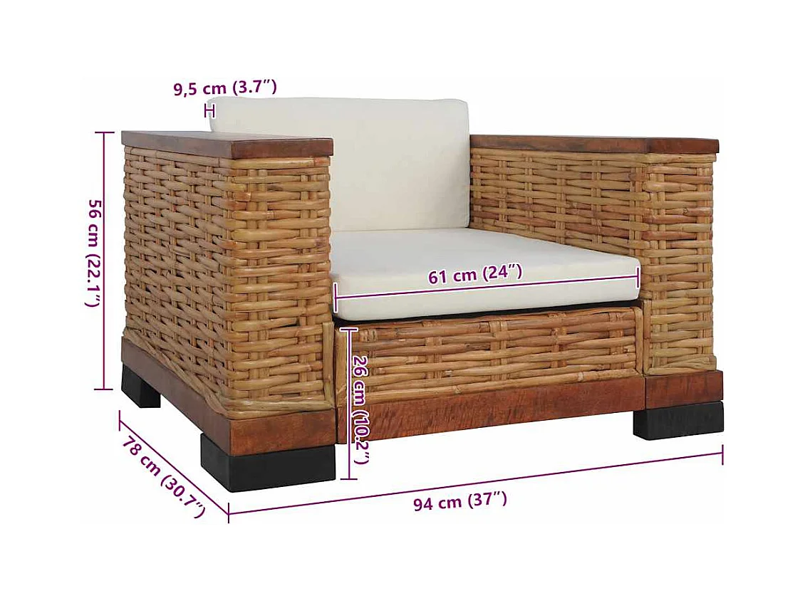 Sillón de salón | Silla Relax con cojines ratán natural SHL2678