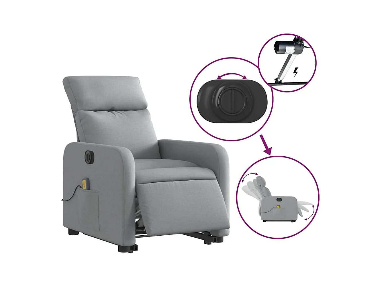 Sillón de salón | Silla | Sillón de masaje eléctrico reclinable elevable tela gris claro SHL3922