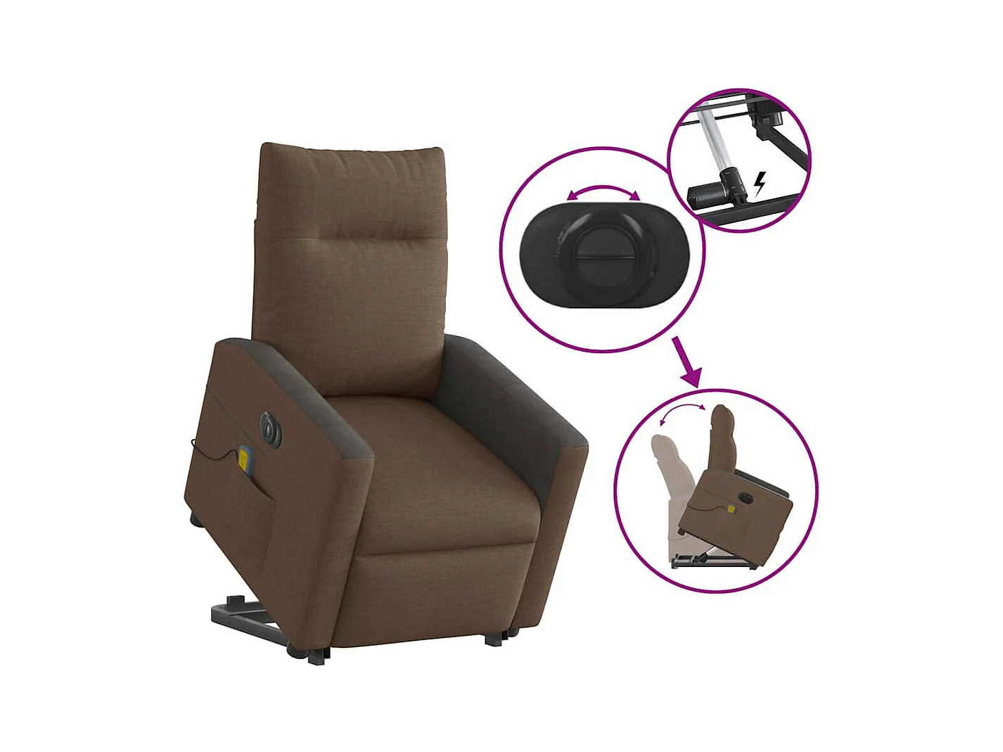Silla de relax | Sillón eléctrico reclinable elevable de tela marrón oscuro SHL8870