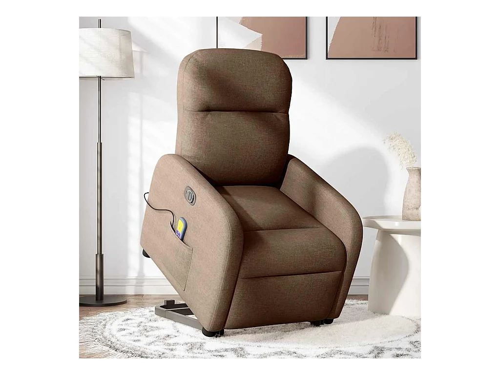 Sillón de relax | Sillón reclinable con masaje de tela marrón SHL4997