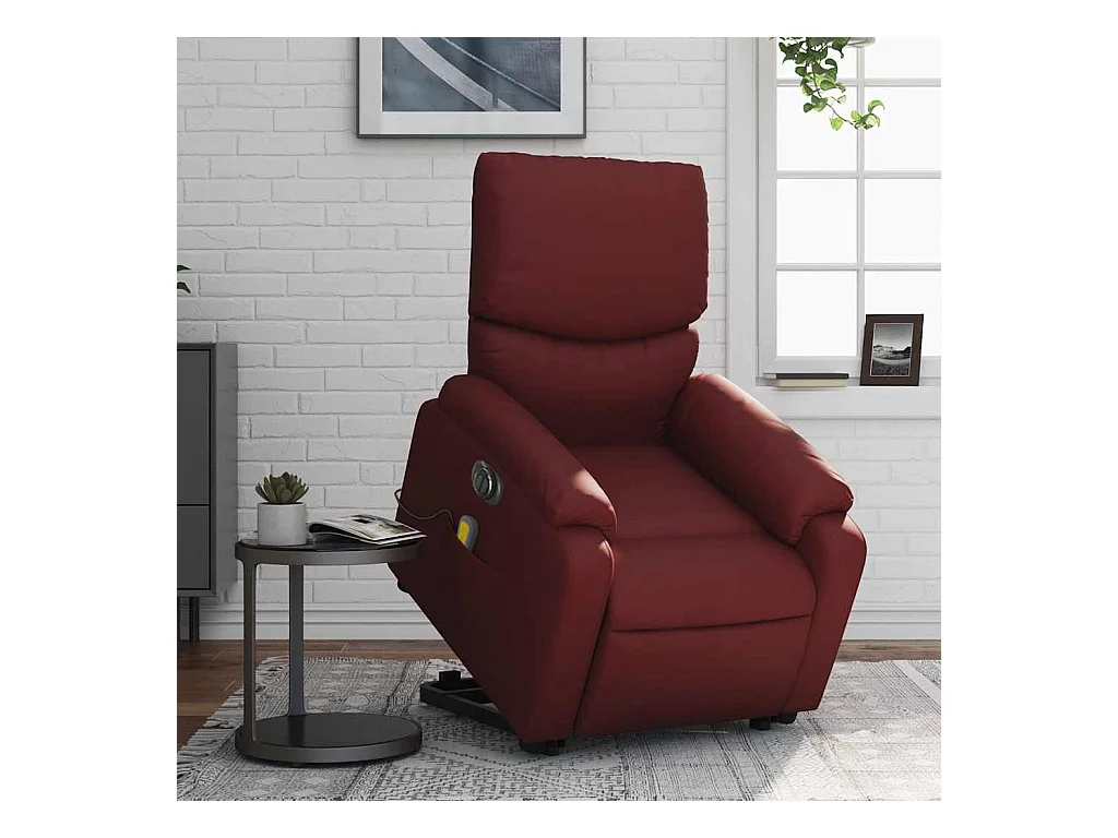 Sillón de salón | Silla | Sillón de masaje elevable eléctrico cuero artificial rojo tinto SHL6727