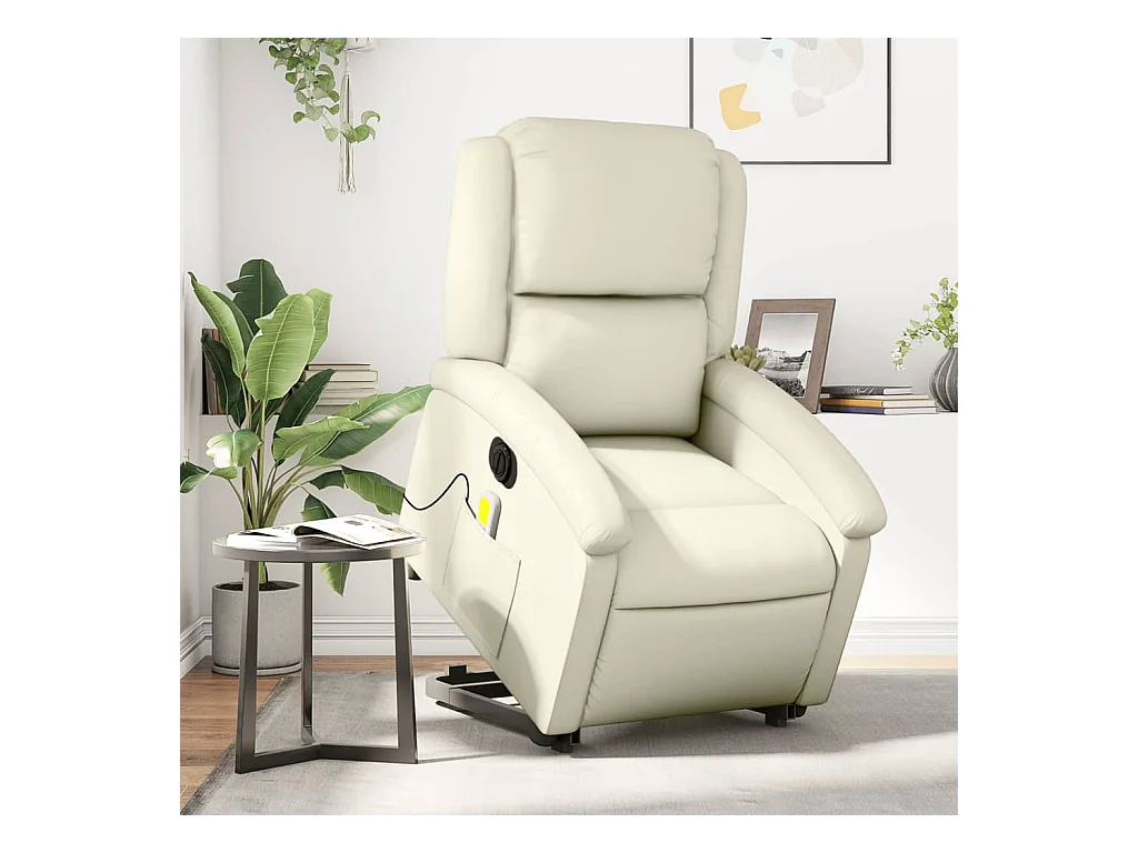 Sillón de salón | Silla | Sillón de masaje elevable eléctrico cuero sintético crema SHL5341