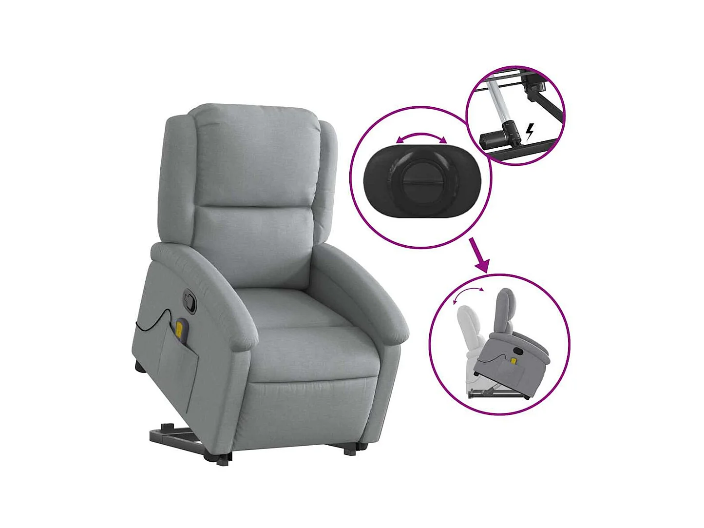 Sillón de relax | Silla | Sillón reclinable elevable de tela gris claro SHL4131