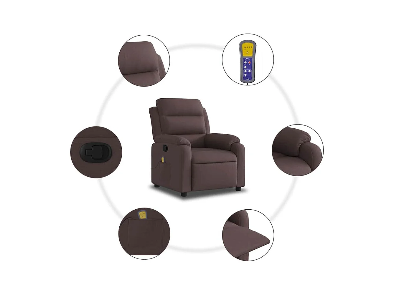 Sillón de relax | Sillón reclinable con masaje de tela marrón SHL5453