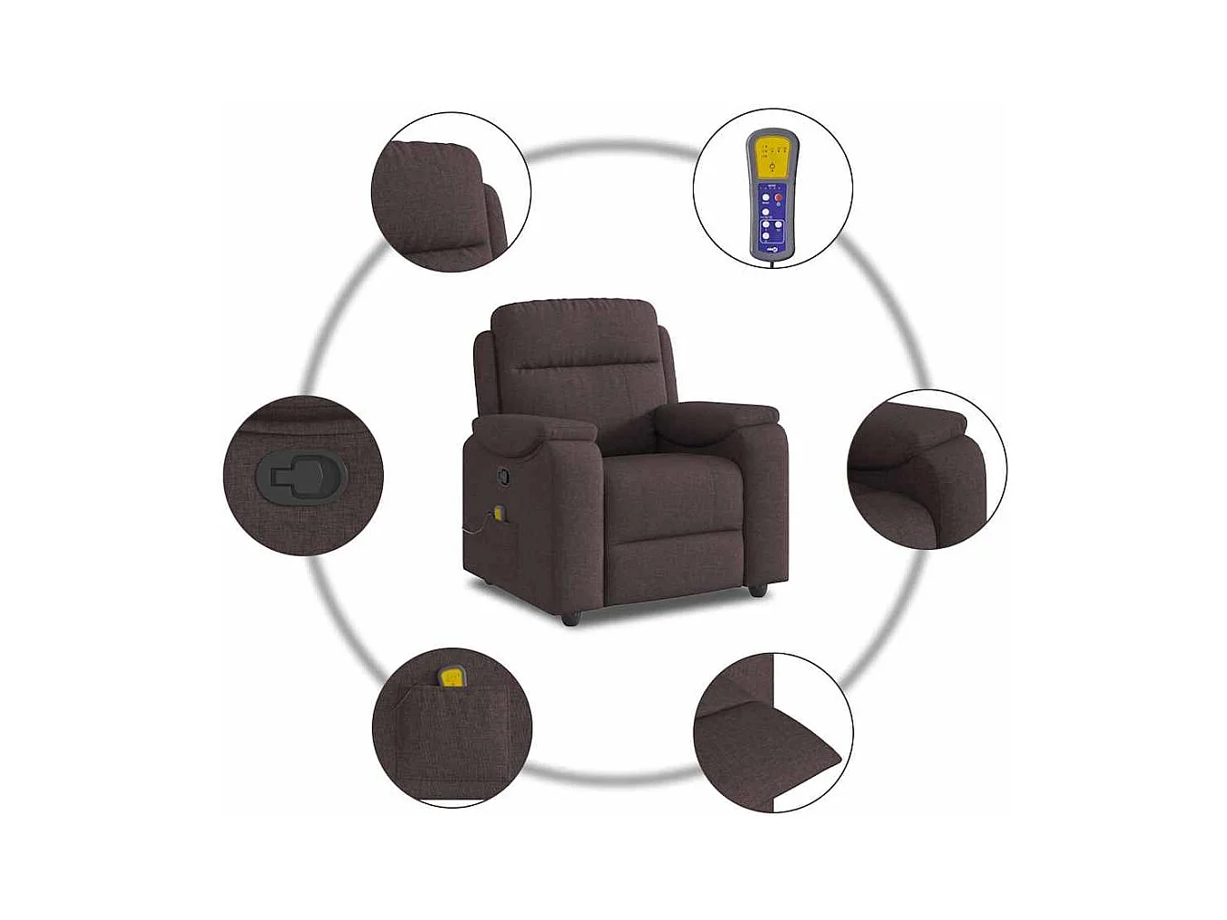 Sillón de relax | Sillón reclinable con masaje de tela marrón SHL2470