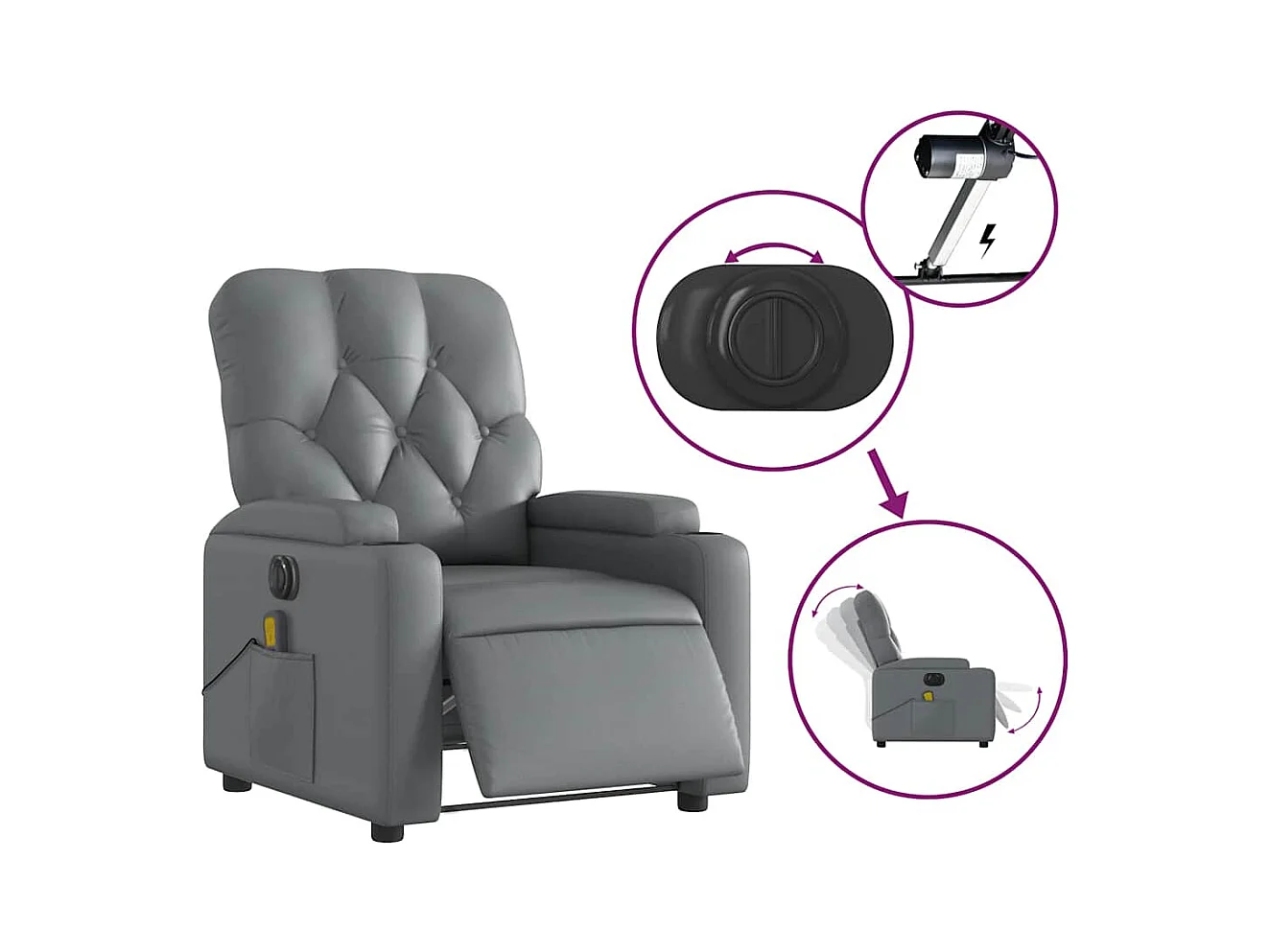 Sillón de relax | Silla | Sillón reclinable eléctrico de cuero sintético gris SHL7406