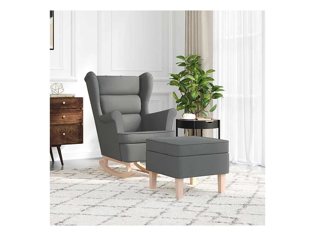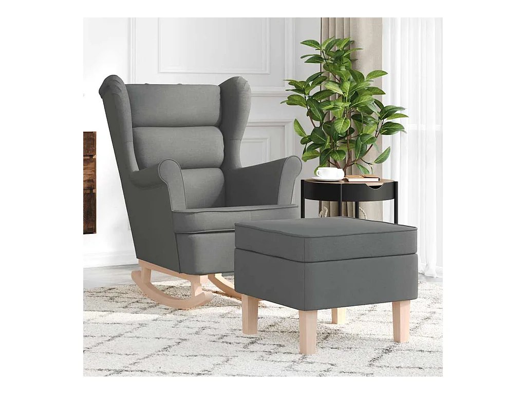 Sillón de salón | Silla | Sillón mecedora con taburete tela gris oscuro SHL5264
