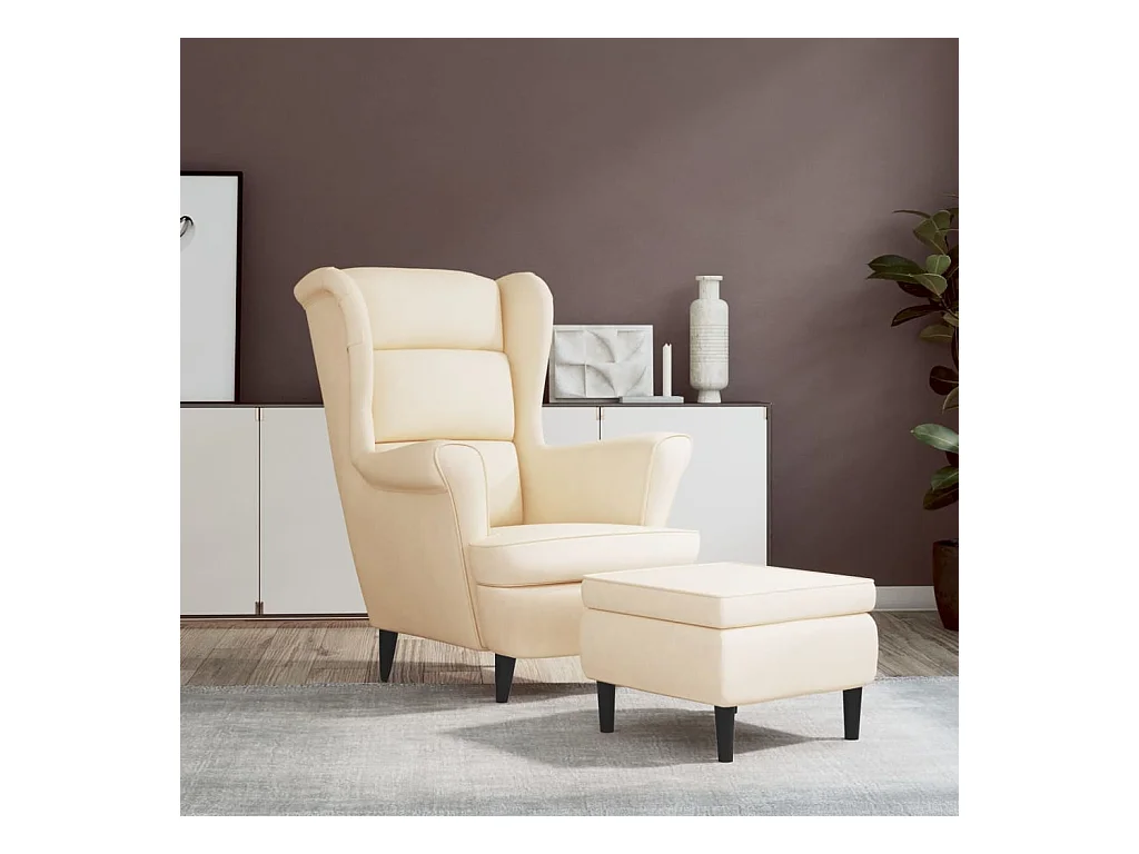 Sillón de salón | Silla | Sillón orejero y taburete de terciopelo crema SHL4044