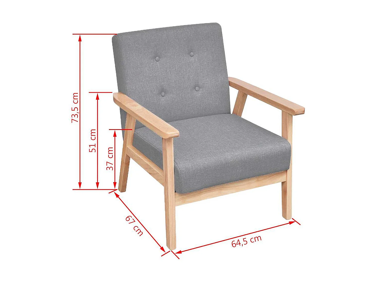 Sillón Santa Cruz tapizado de tela gris 70x72x68 cm