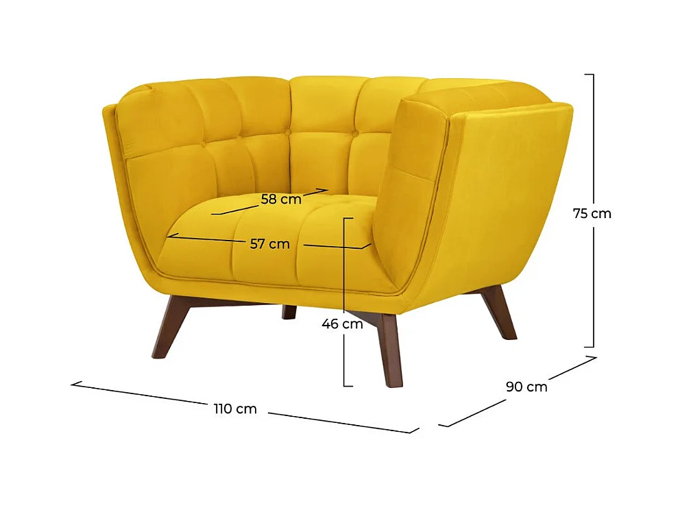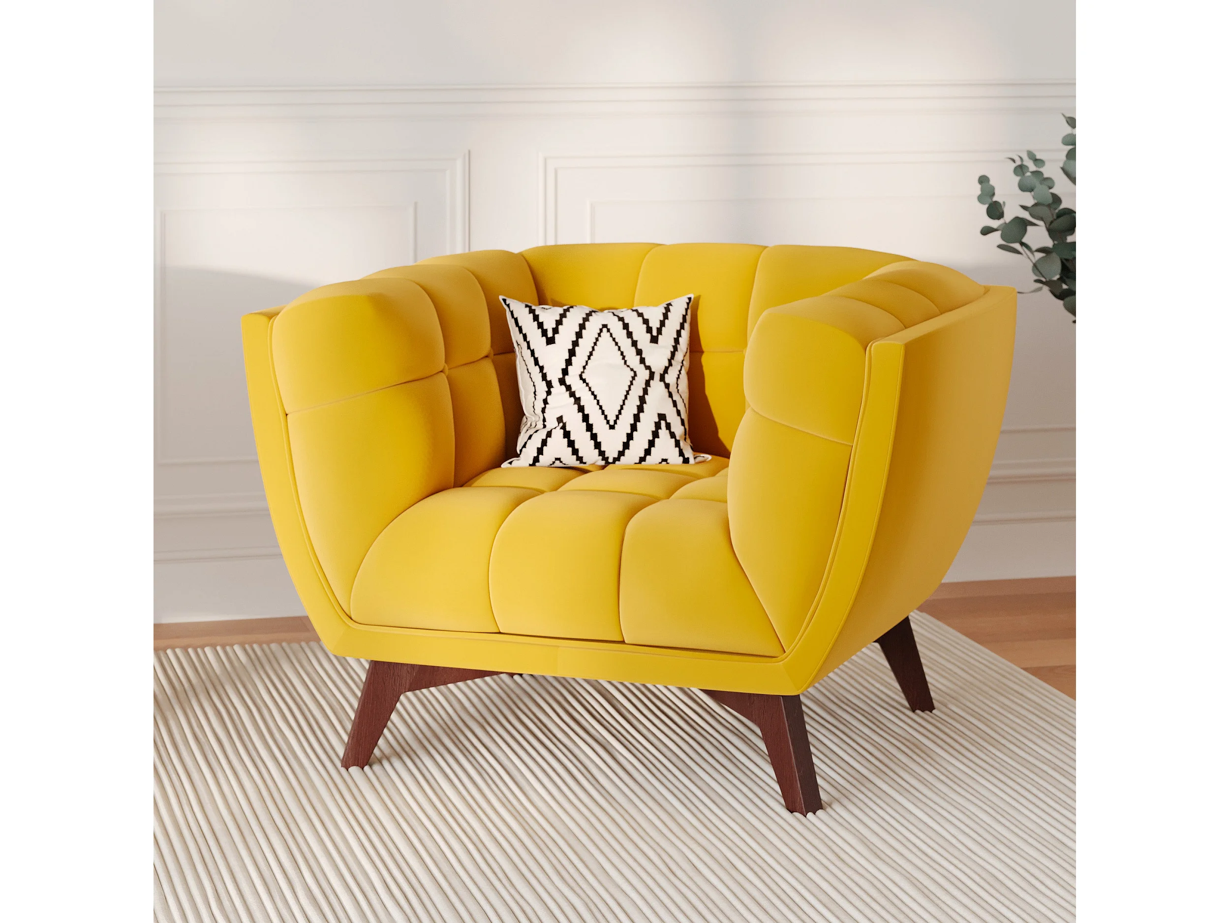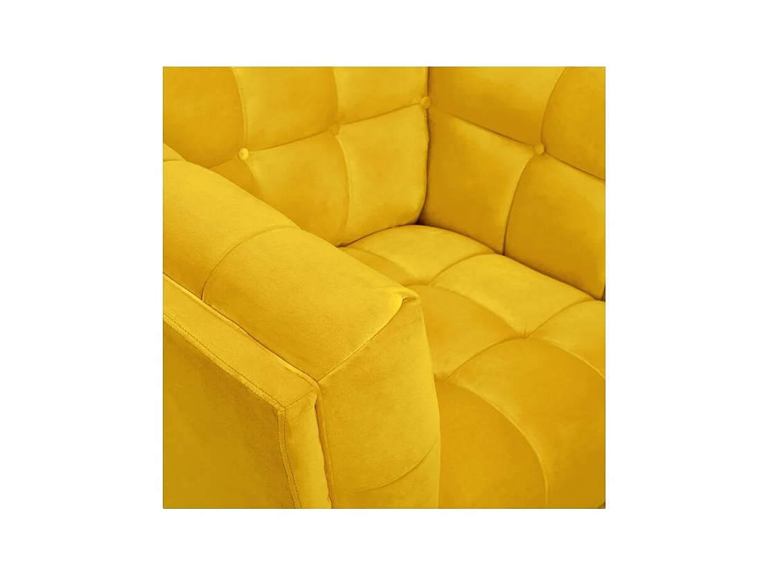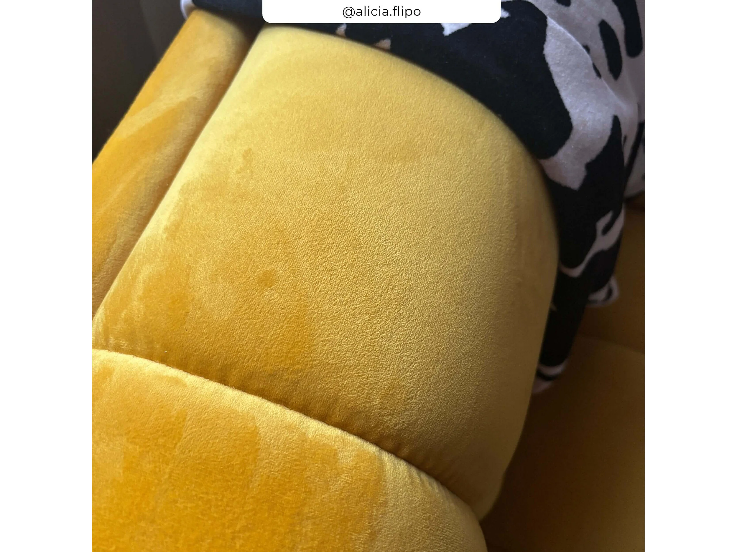 Sillón orejero con taburete terciopelo amarillo mostaza