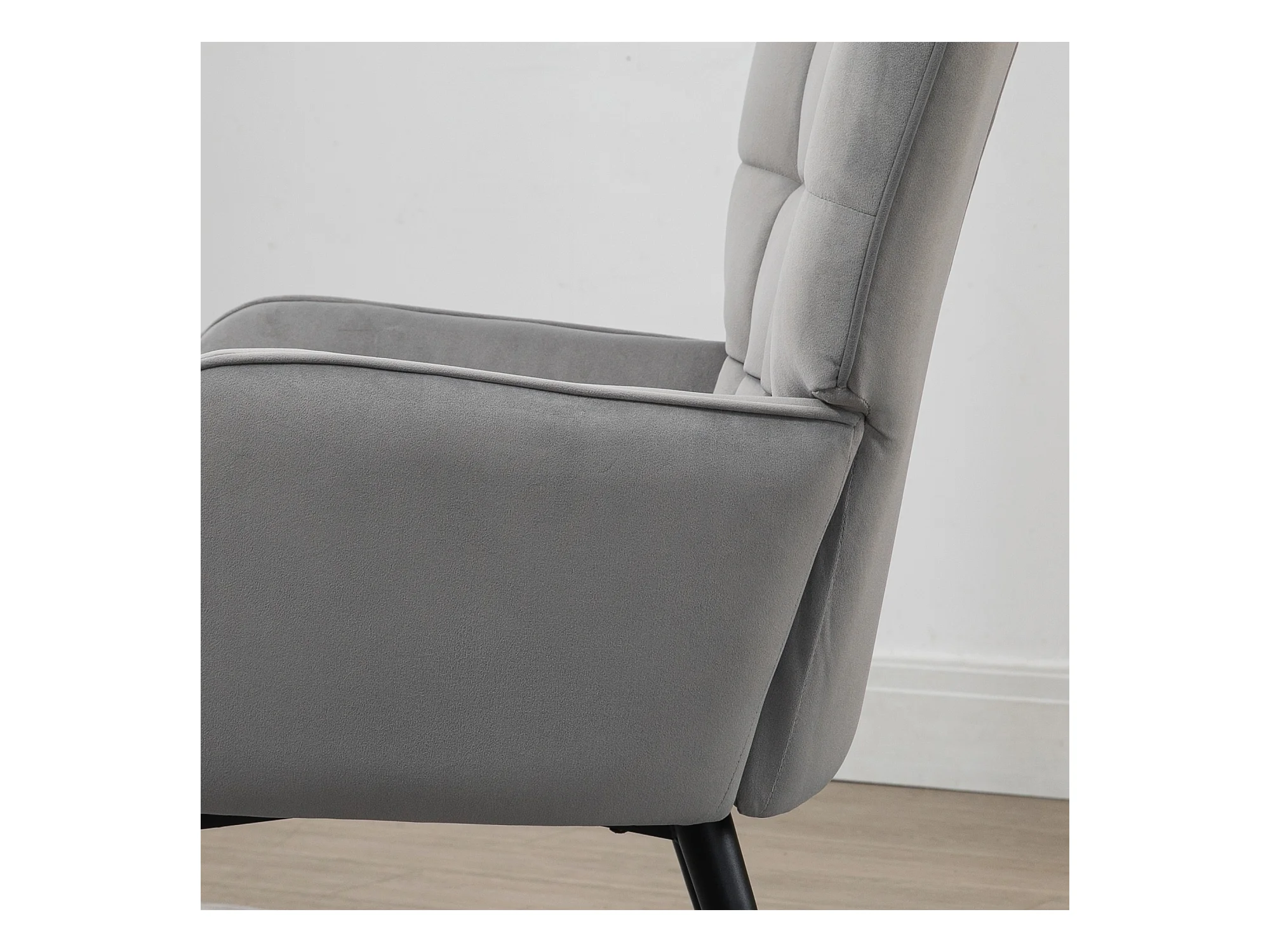 Sillón de terciopelo con puf, asiento cómodo, salón, dormitorio, gris oscuro