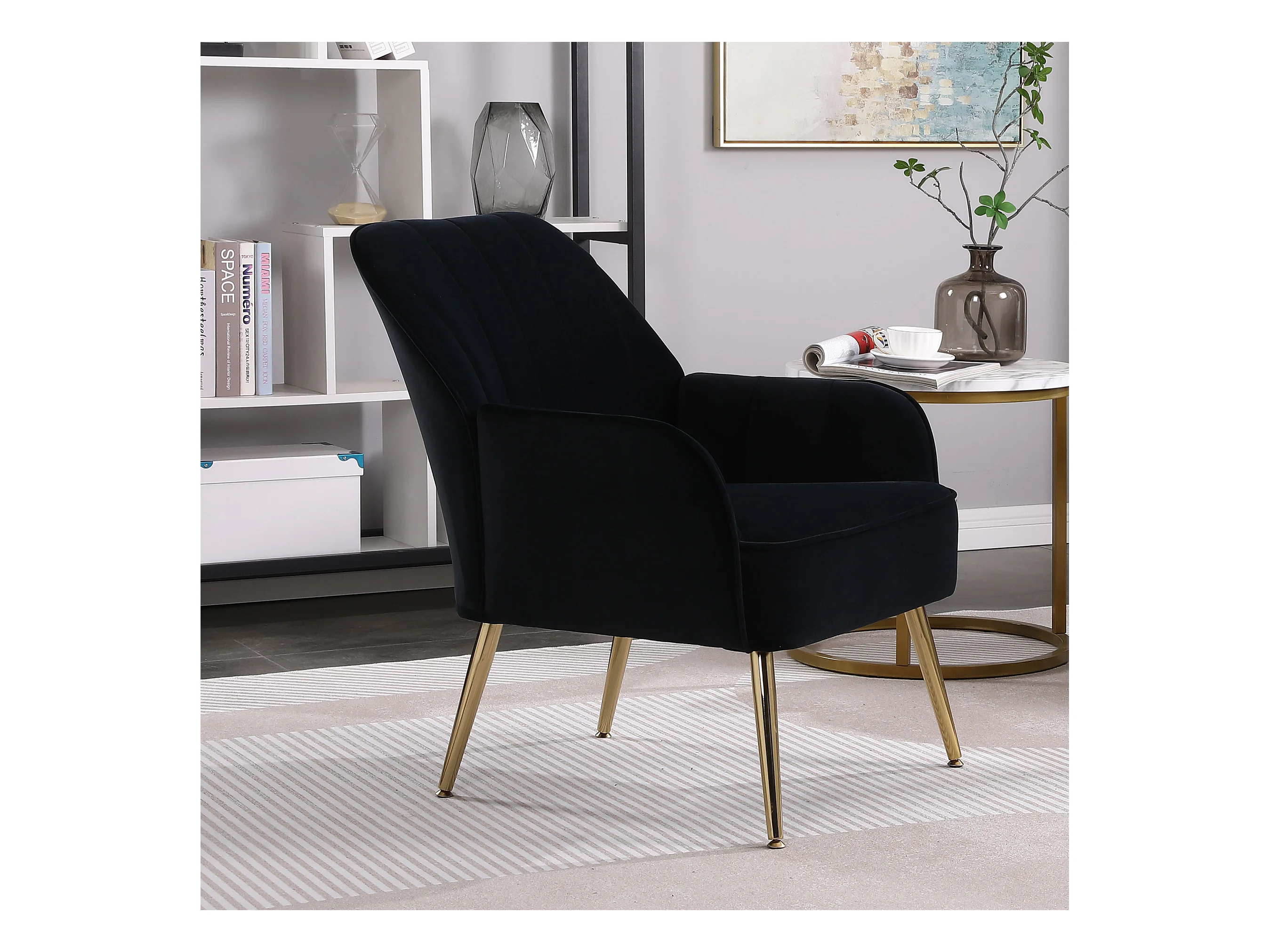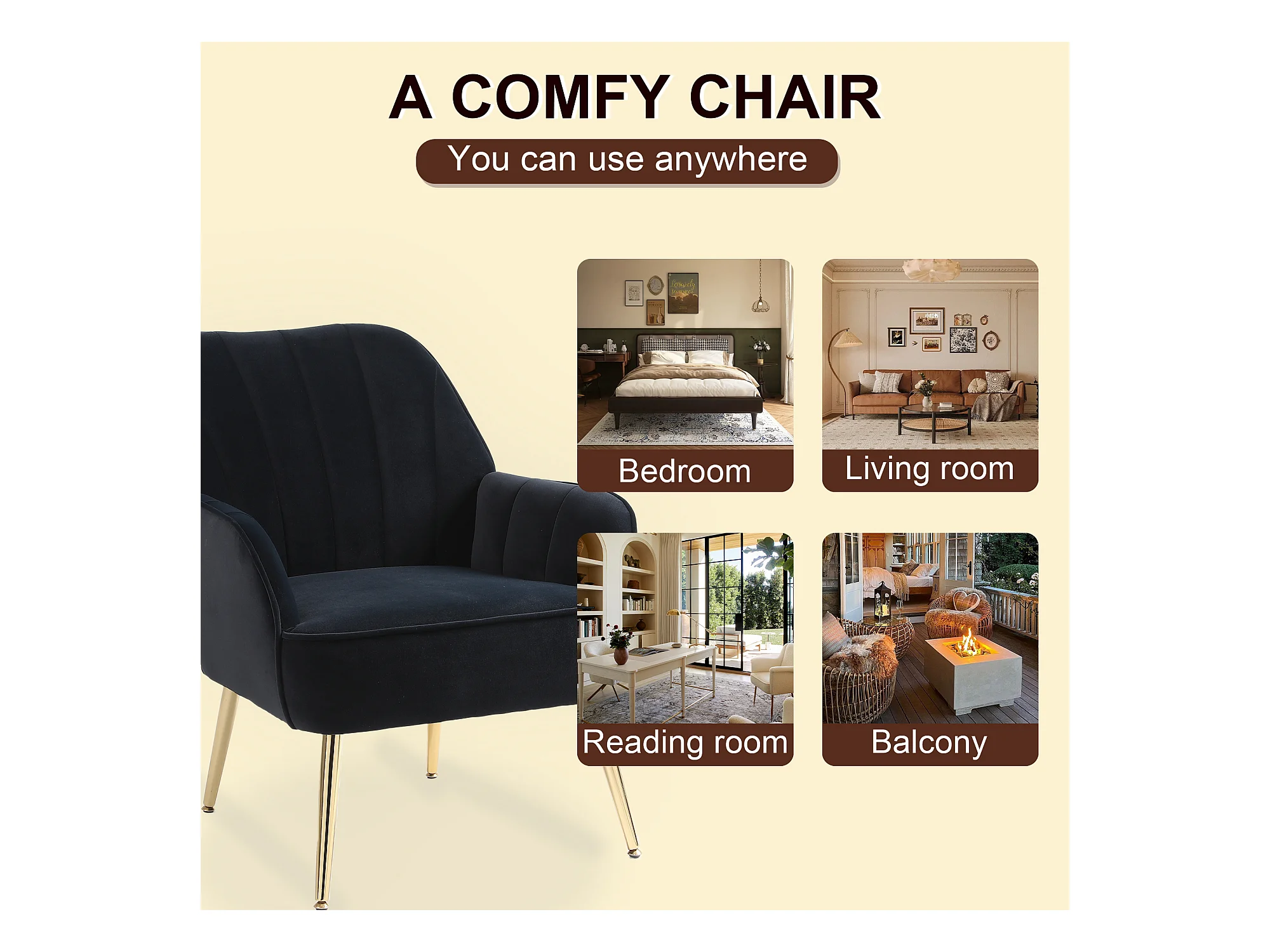 Sillón de terciopelo negro, diseño moderno, cómodo, para salón o oficina, 64 x 73 x 78 cm.