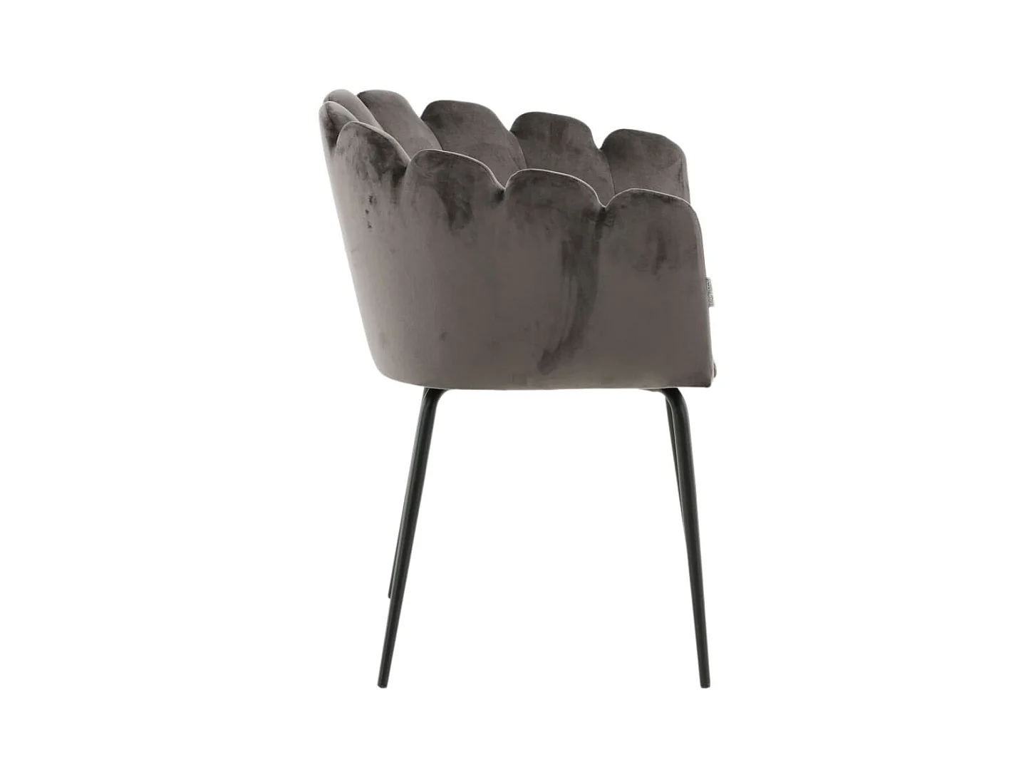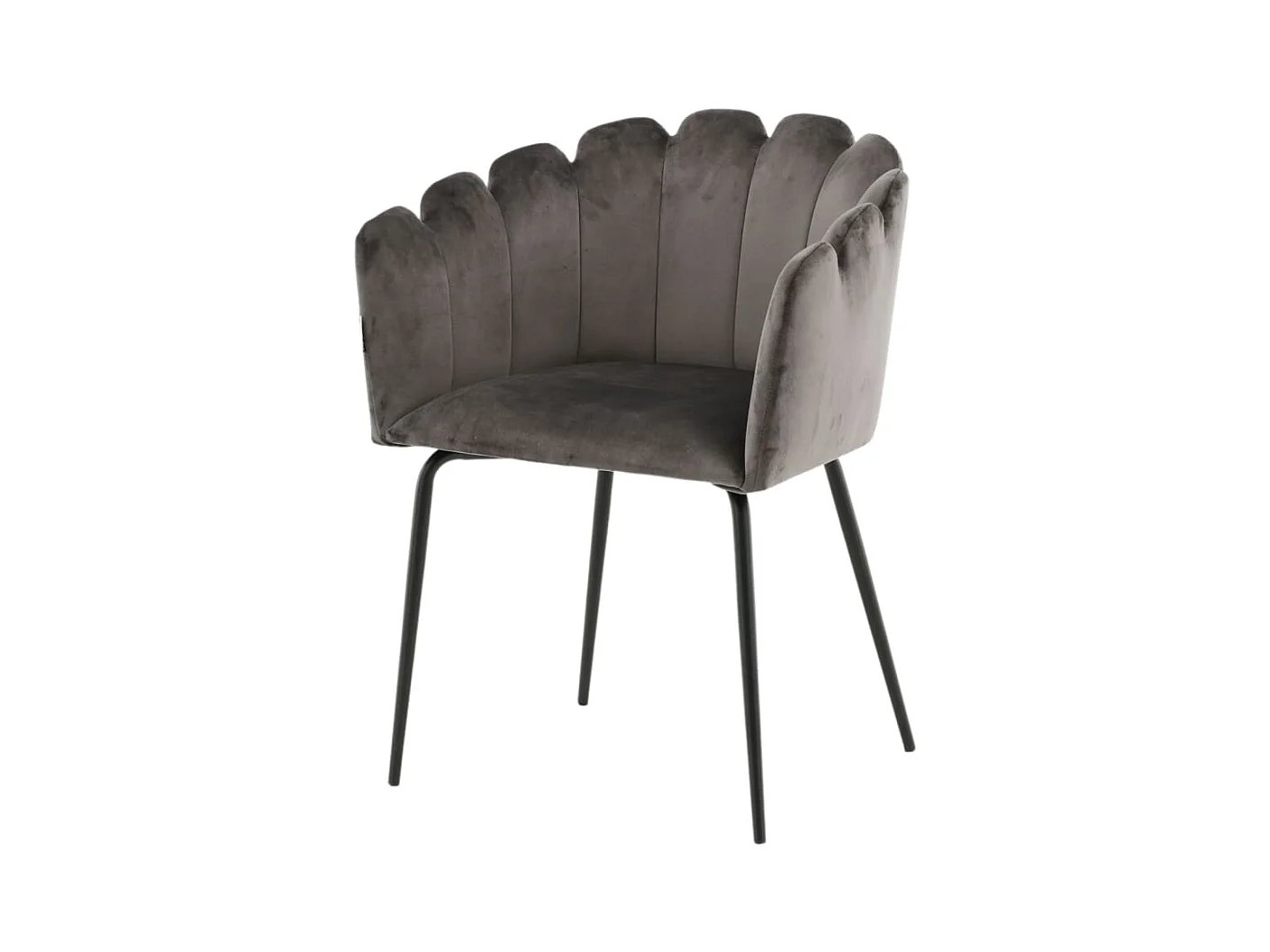 Silla de comedor de diseño en terciopelo gris con patas de acero negro Amboise