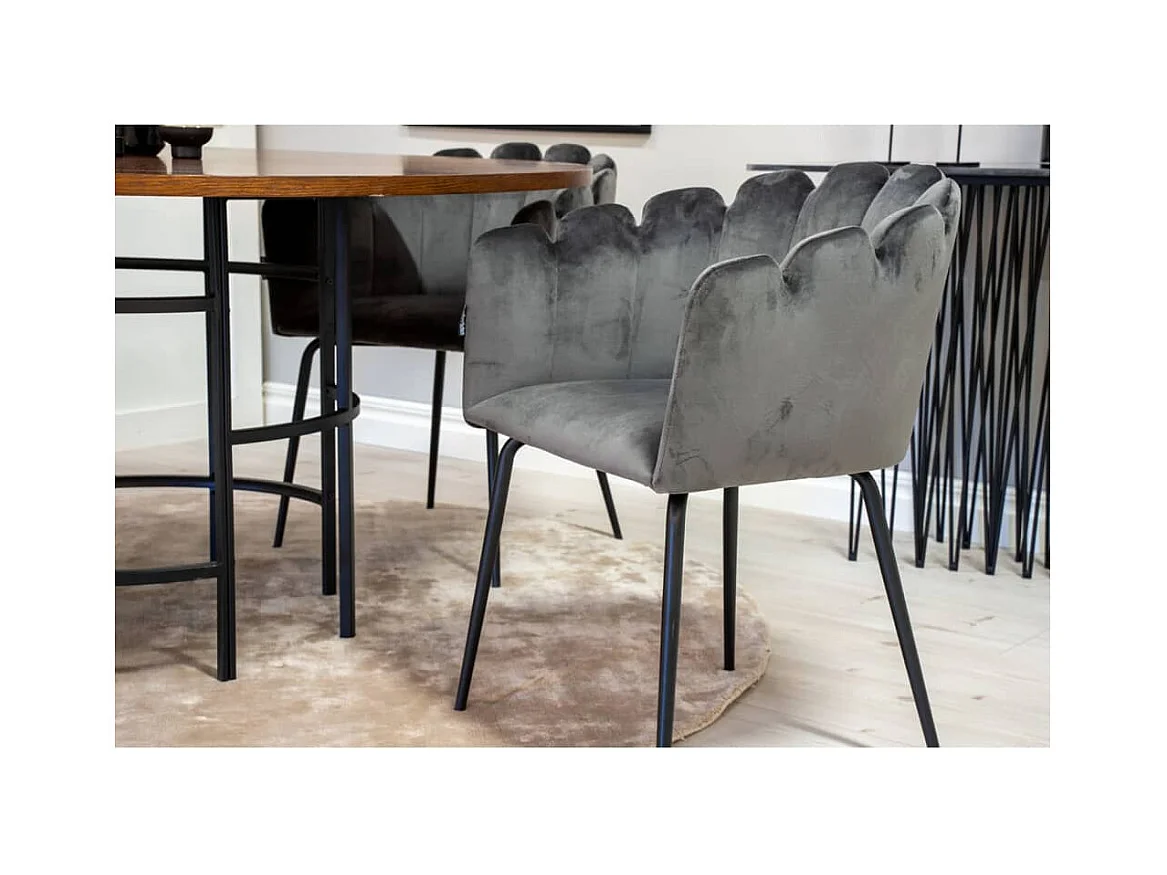 Silla de comedor de terciopelo gris con patas de metal Blois negras