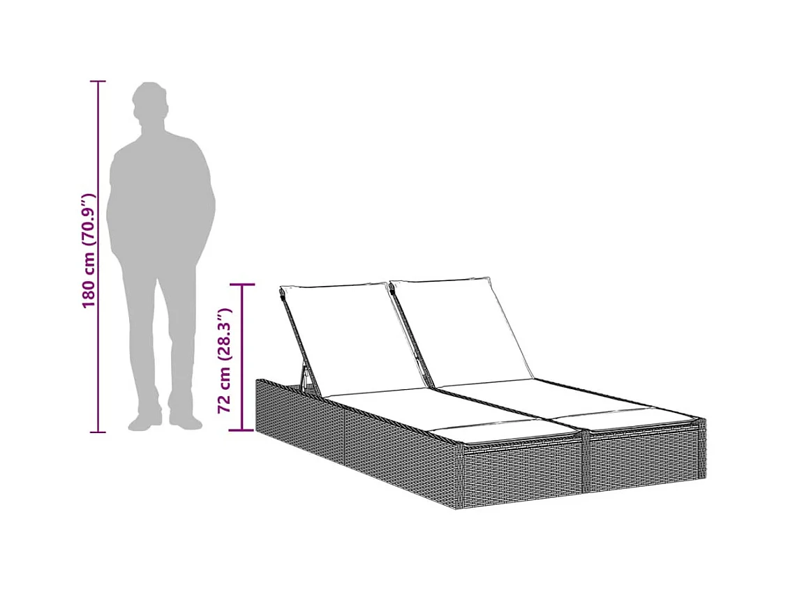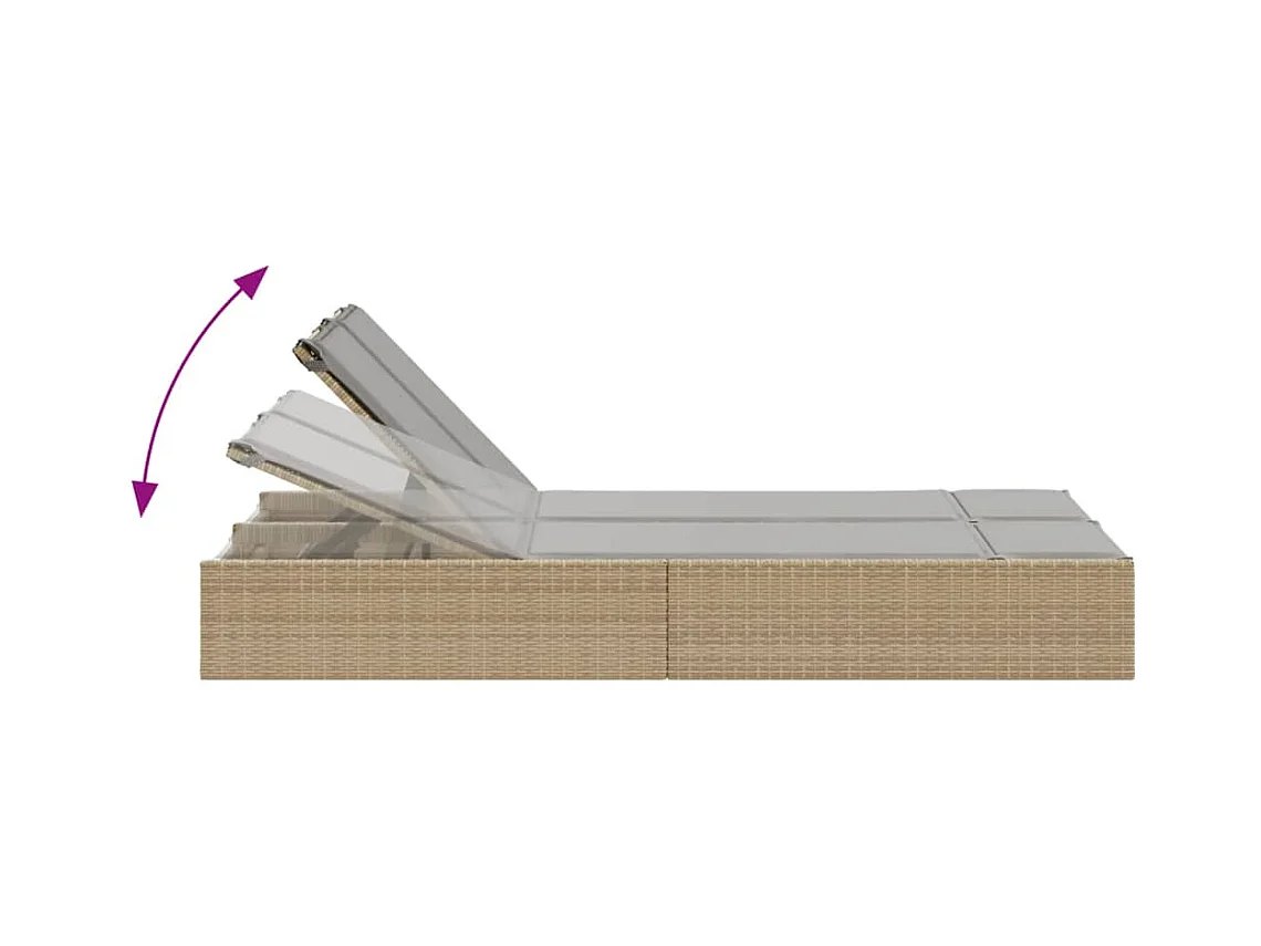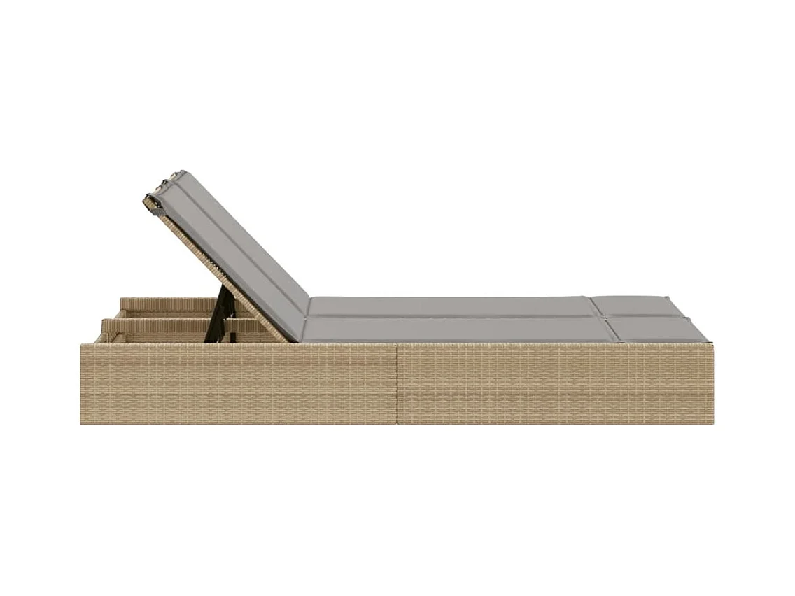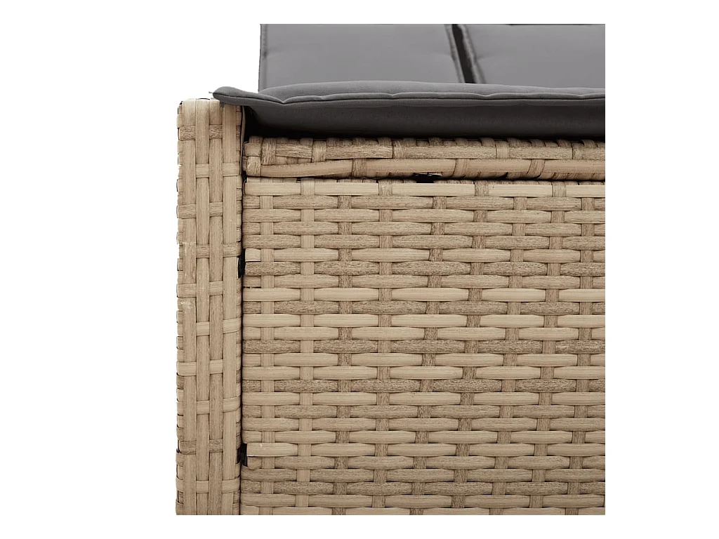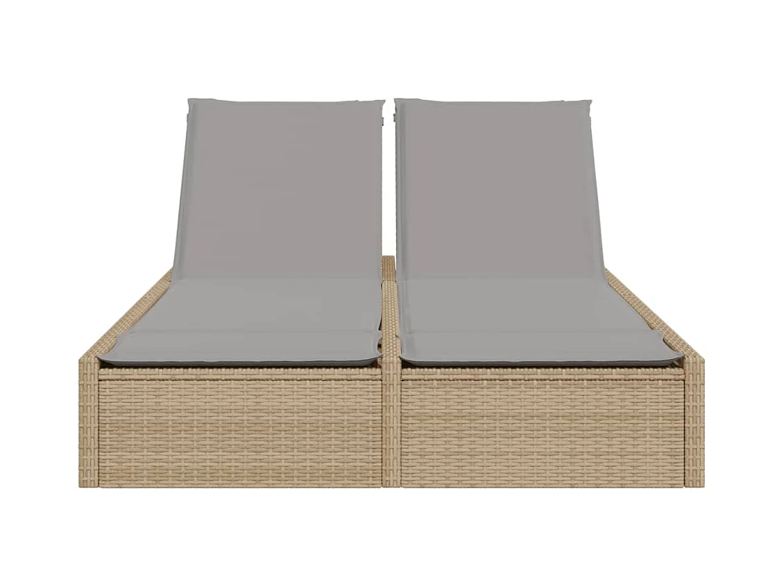 Sillón doble con cojines de resina tejida beige.