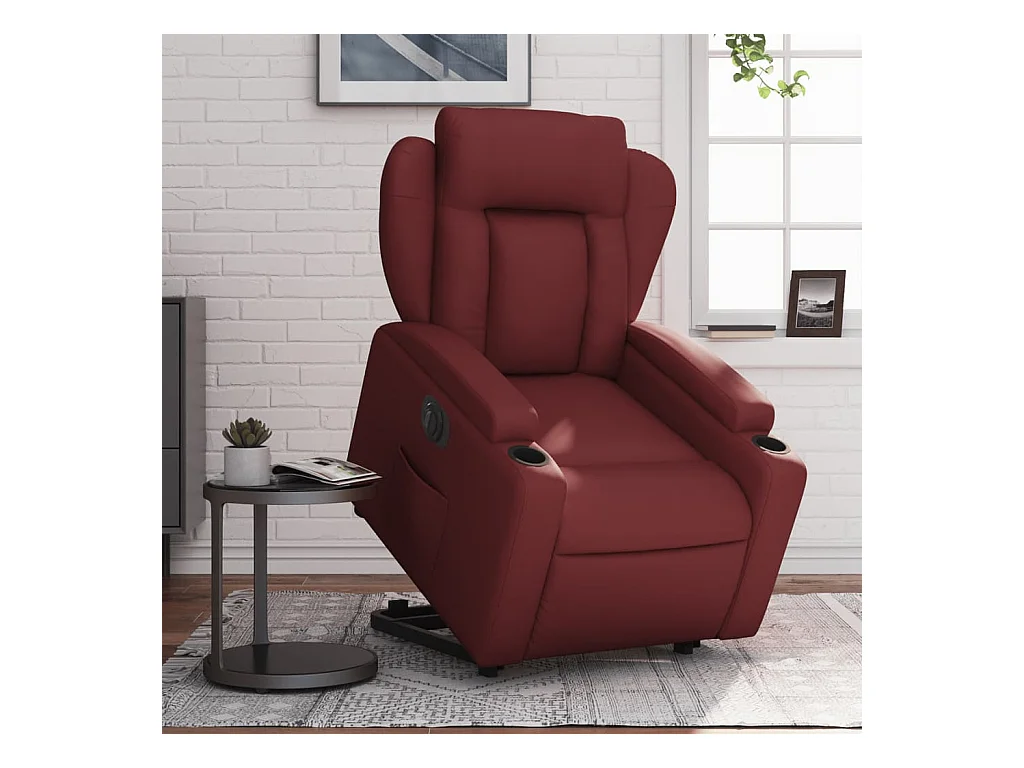 Sillón elevable eléctrico cuero artificial rojo tinto