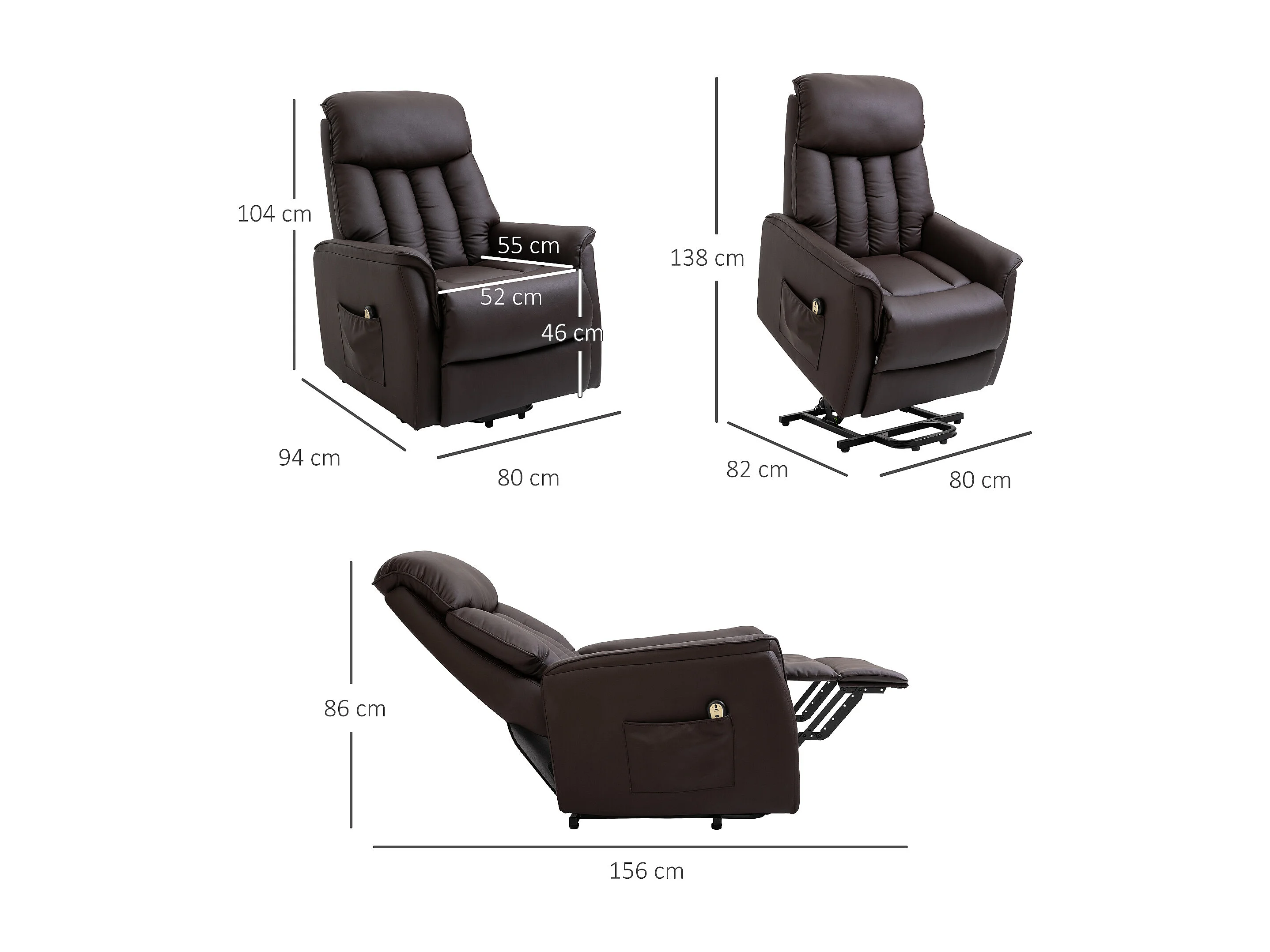 Sillón elevador eléctrico en piel sintética con función relax, marrón, 80x94x104cm