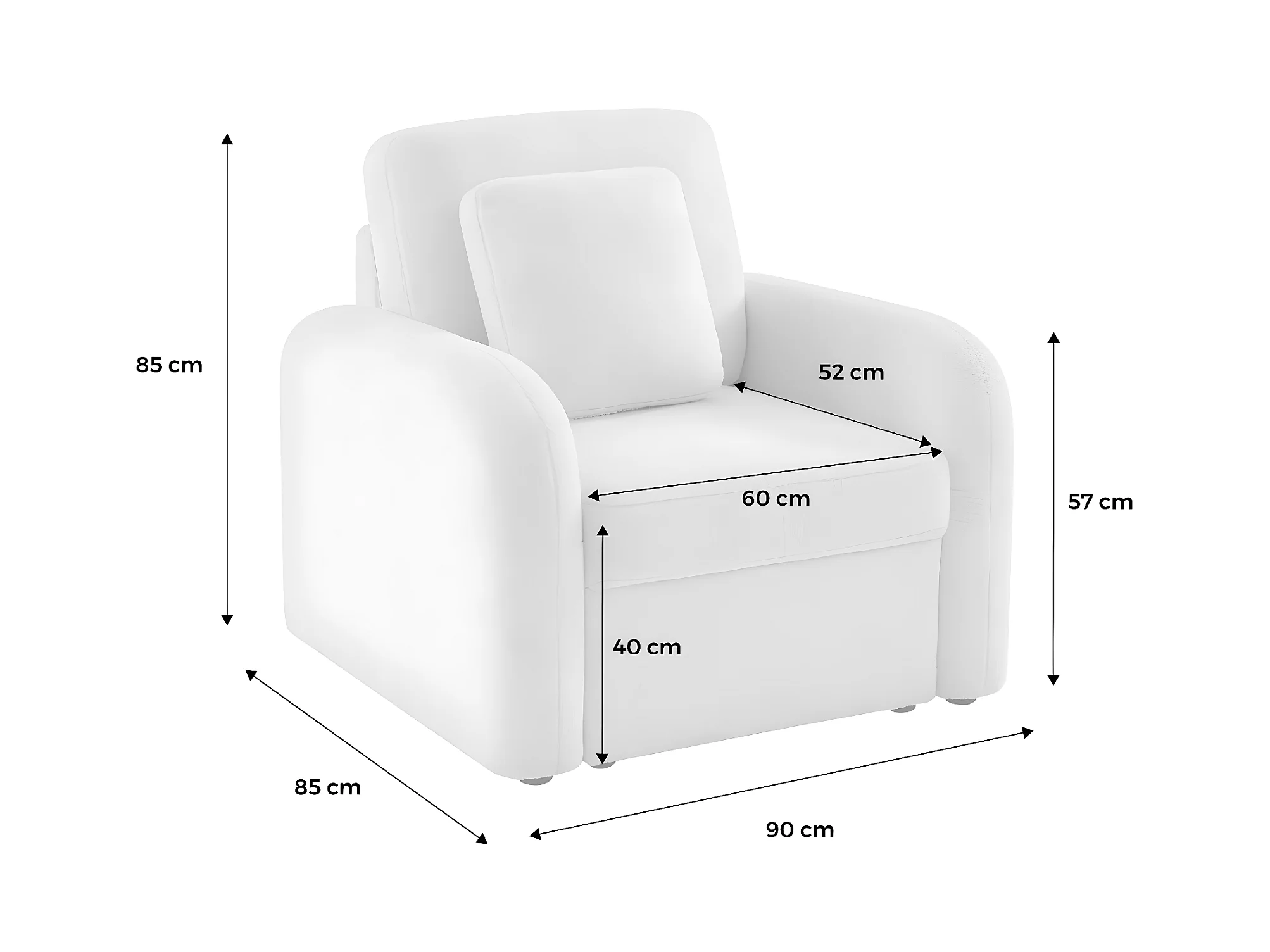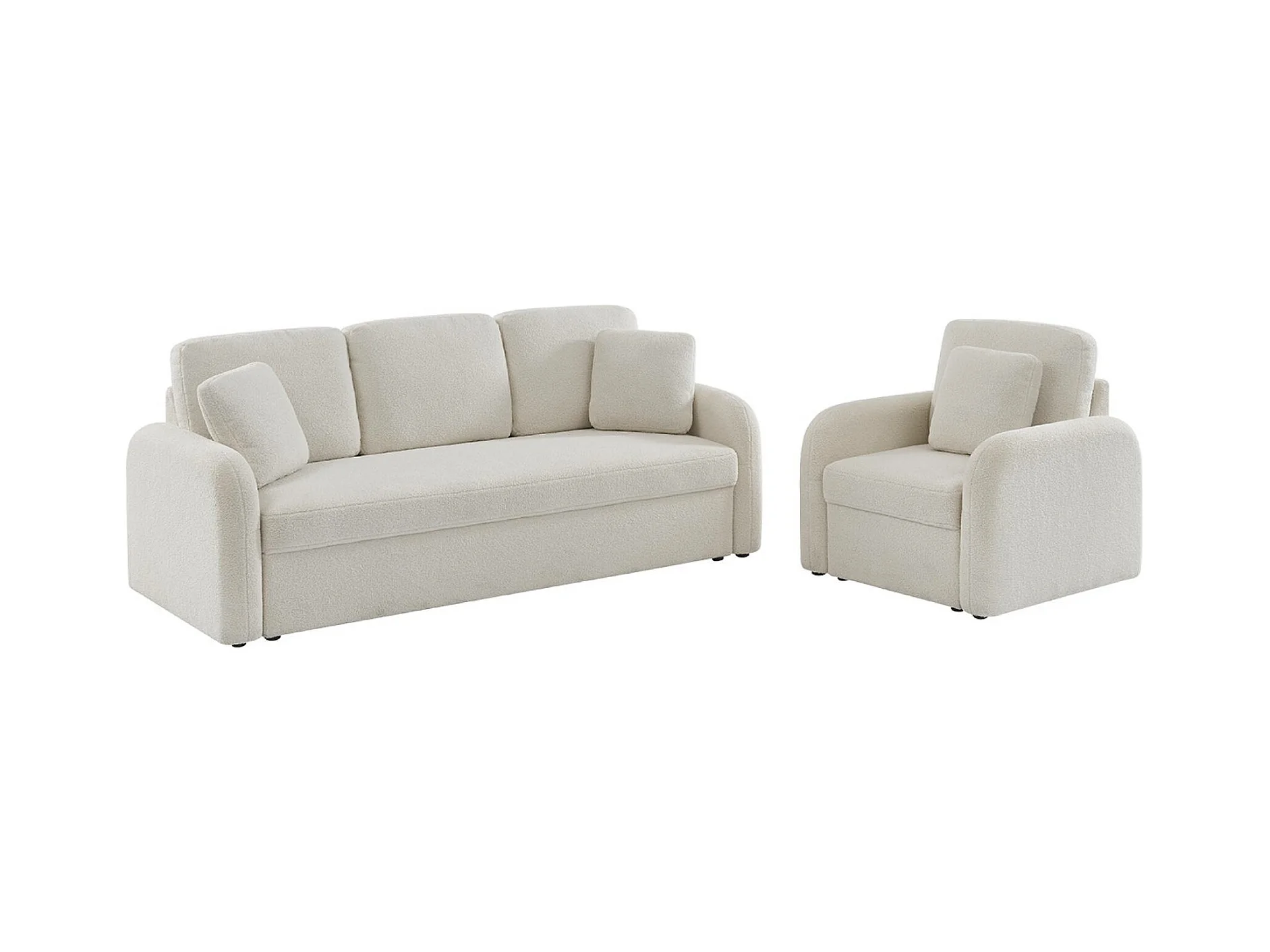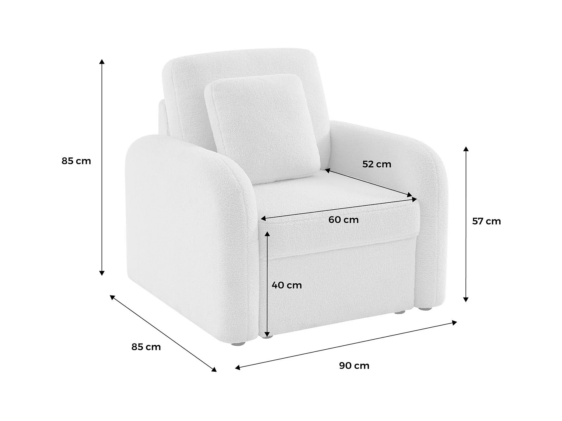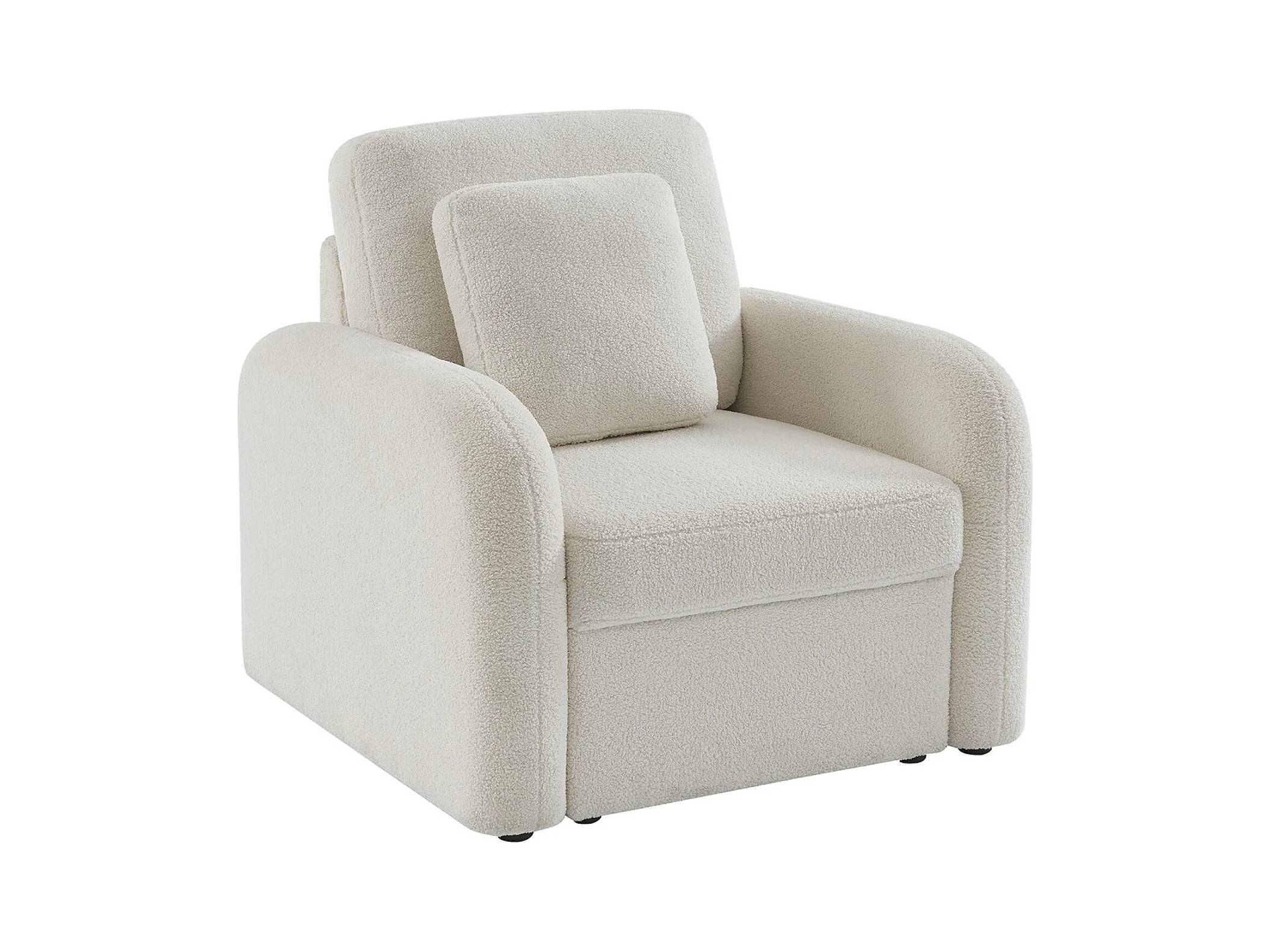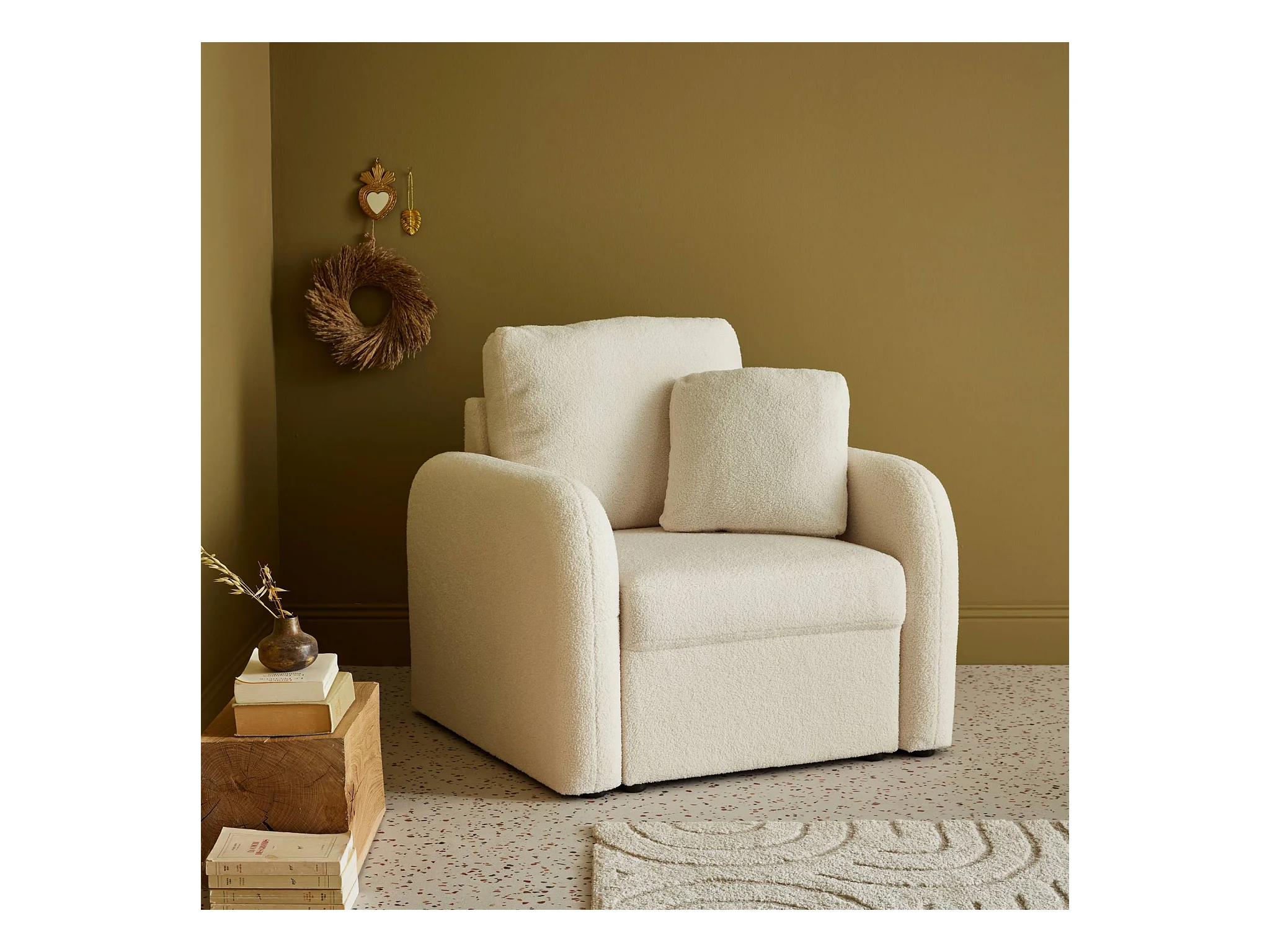 Sillón en tejido borreguito blanco, líneas redondeadas crema