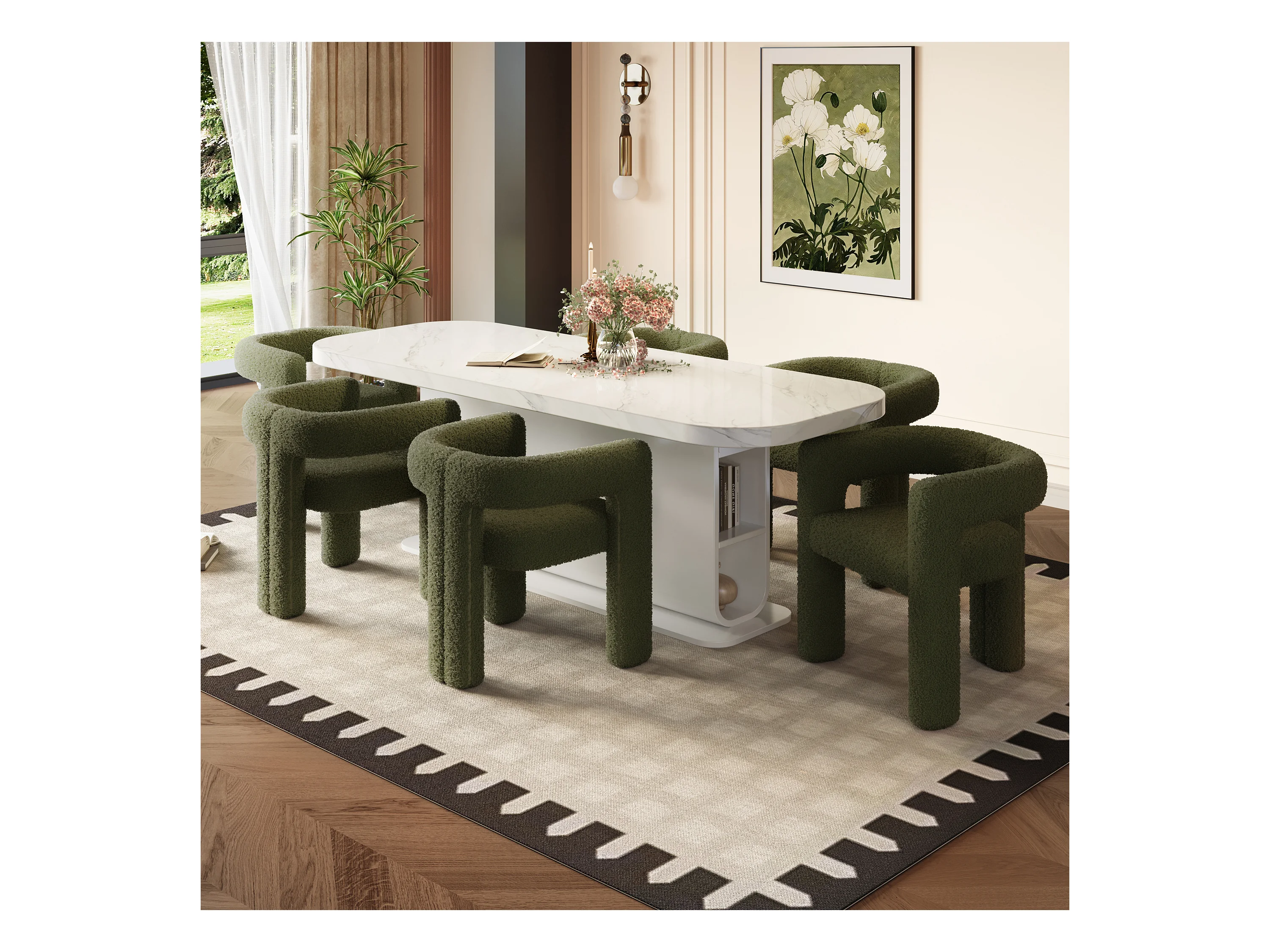 Silla giratoria de 360° con asiento acolchado y respaldo redondo para sala de estar y oficina, Smaragd