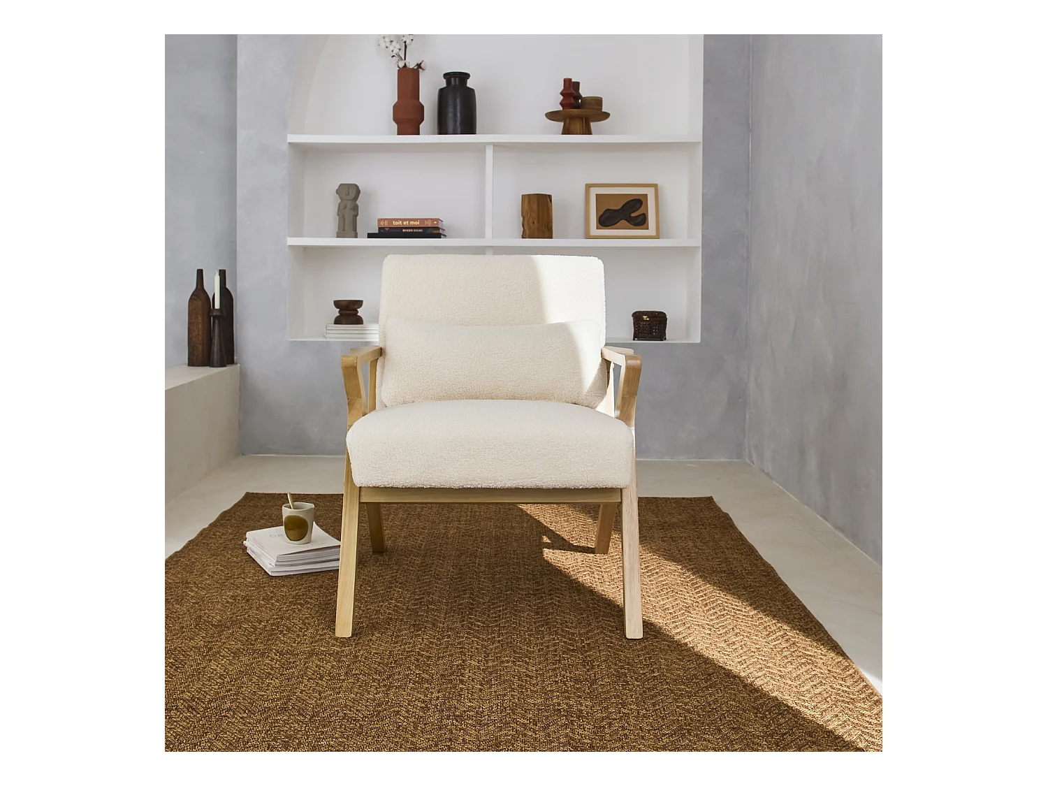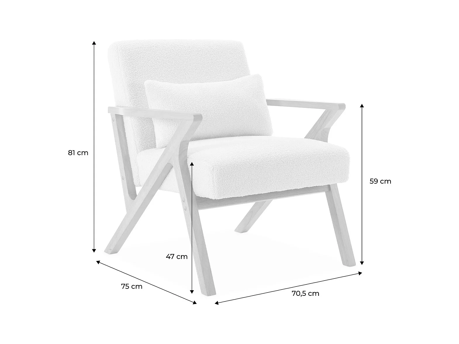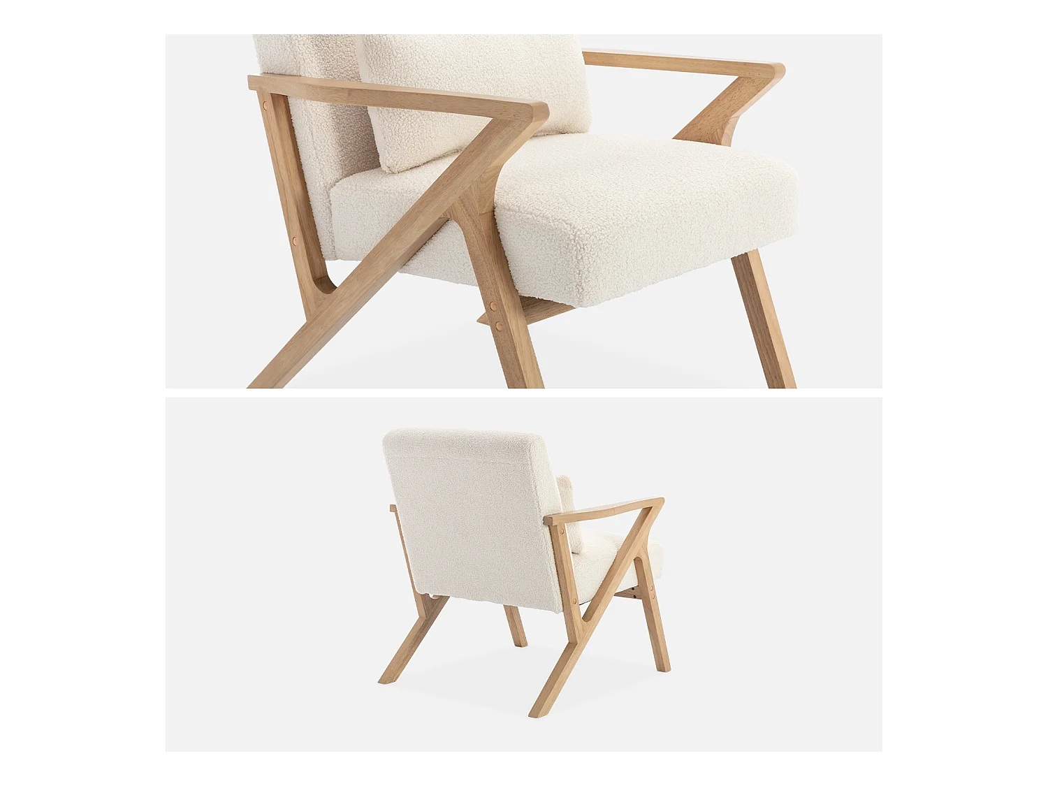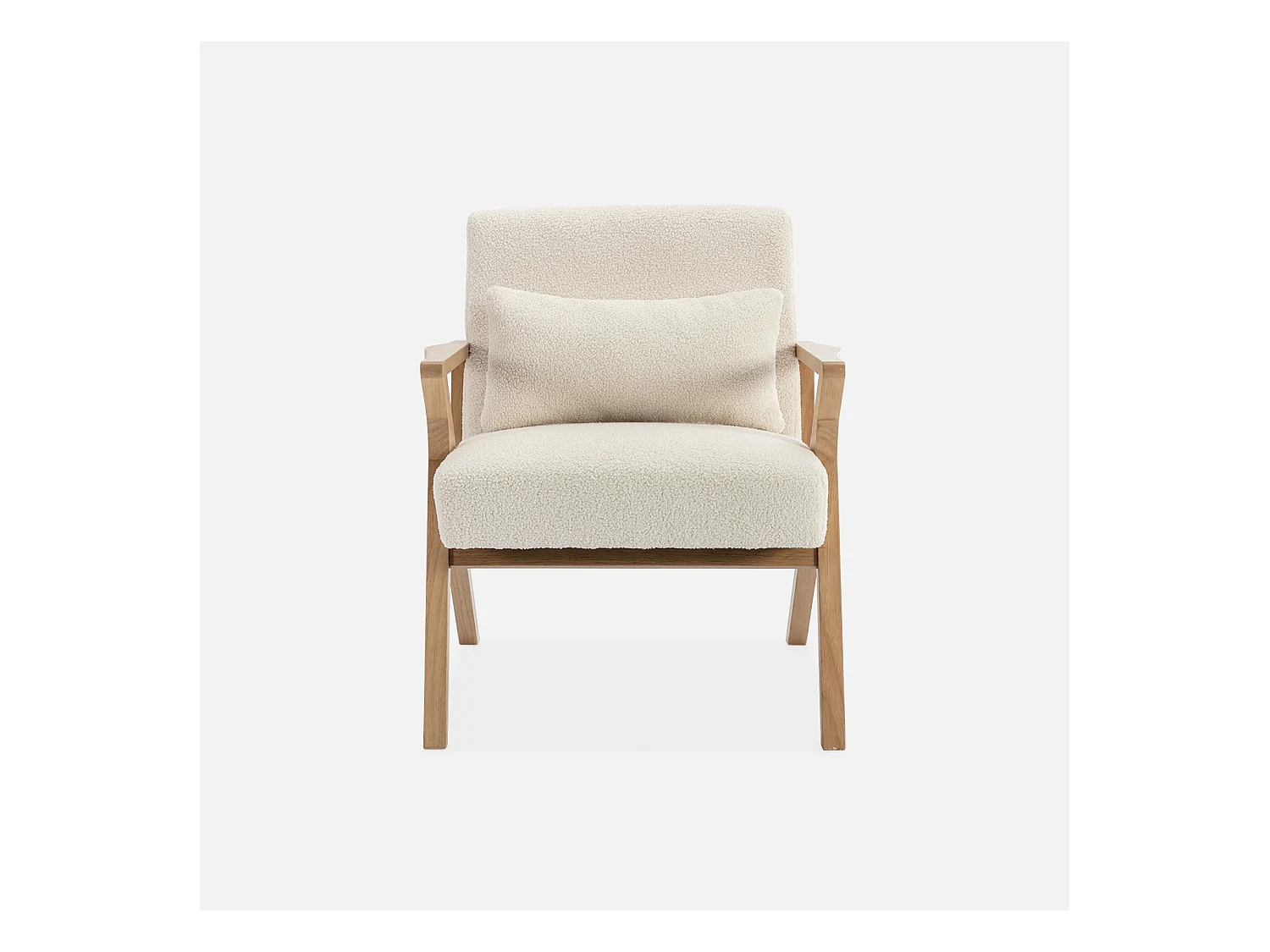 Sillón estilo escandinavo de madera de hevea borreguito crema