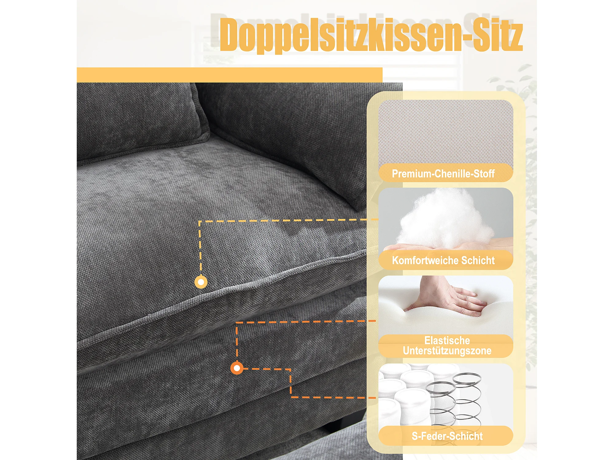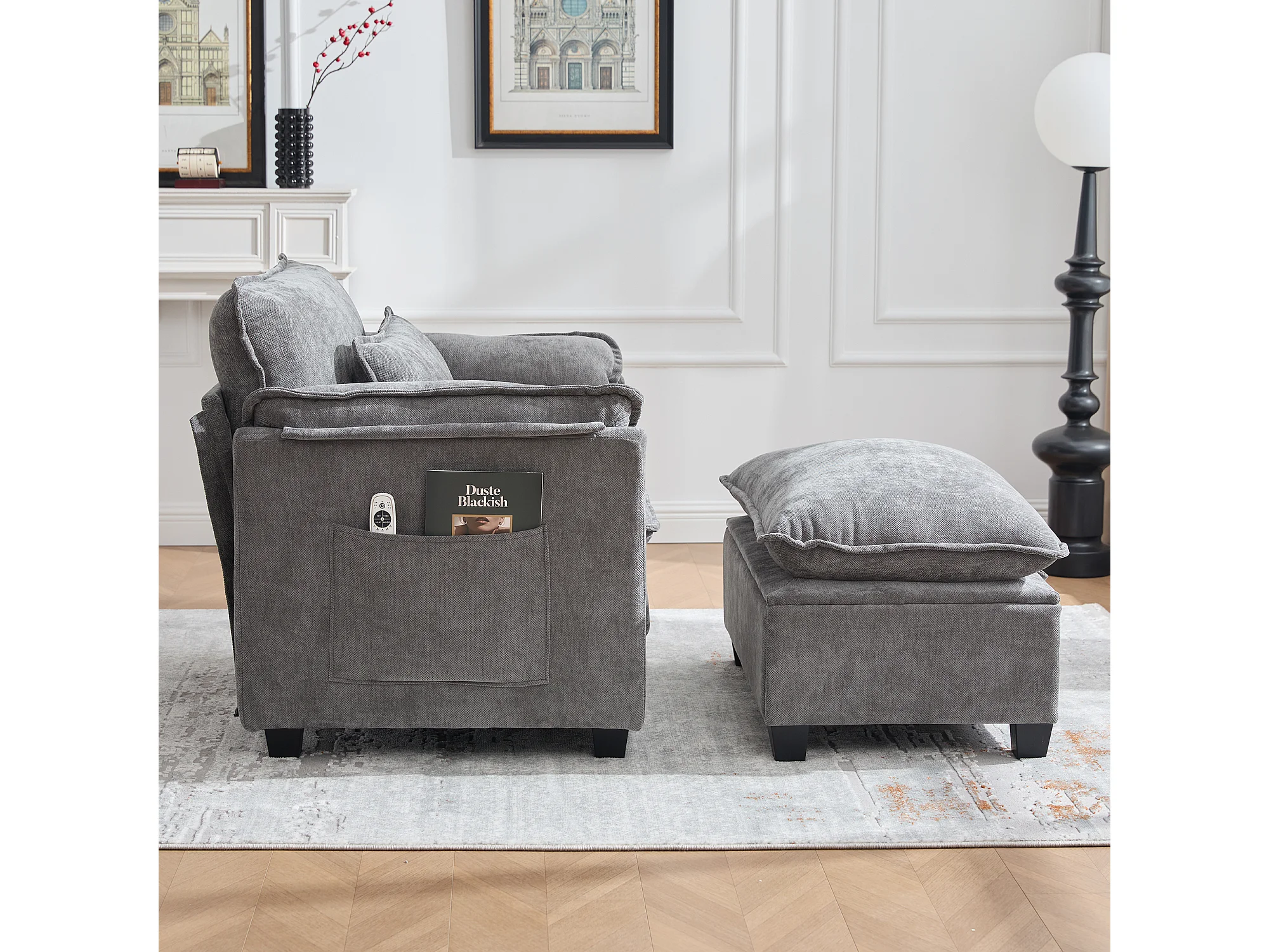 Sillón extragrande de chenilla con otomana, espacio de almacenamiento y cojines para sala de estar y dormitorio, color beige.