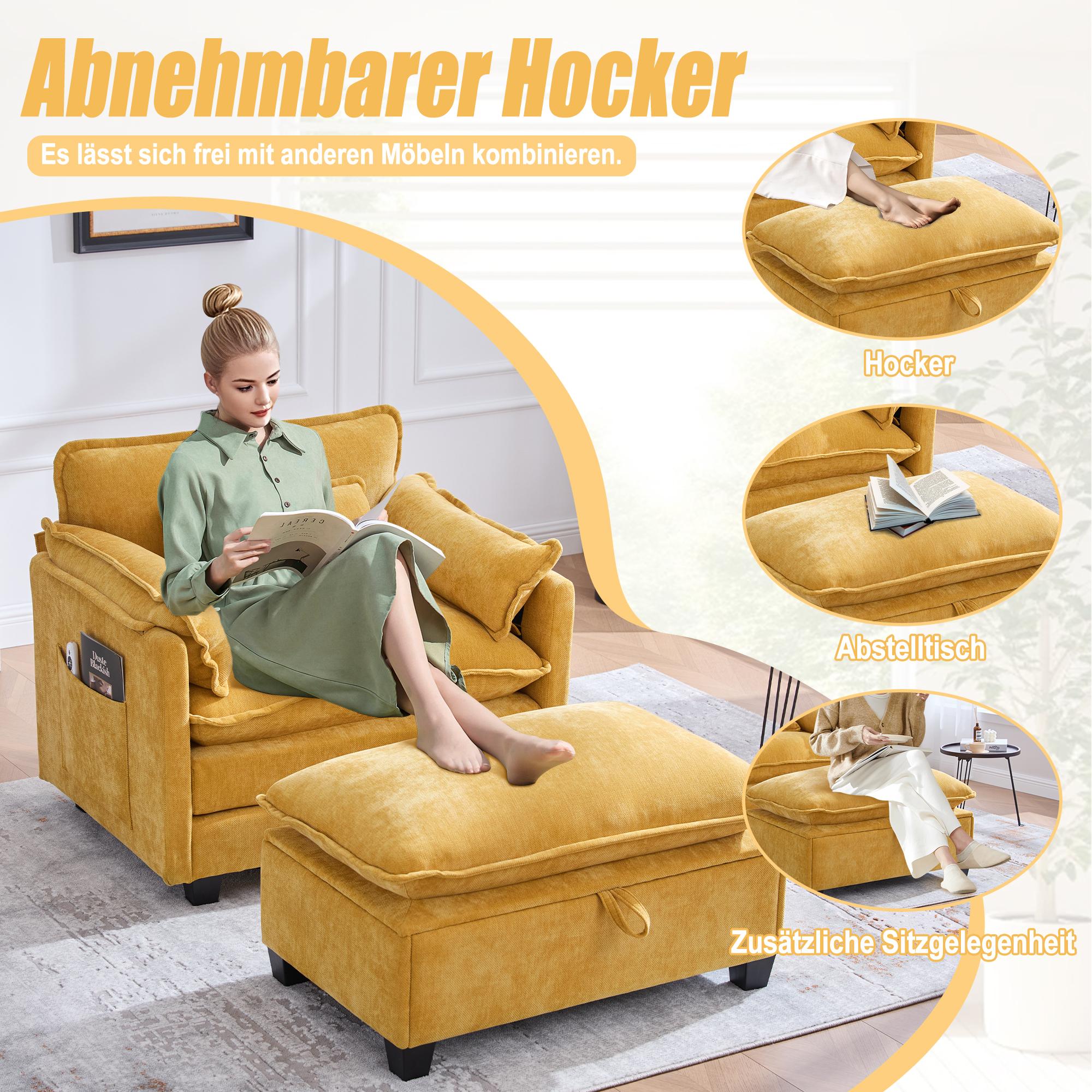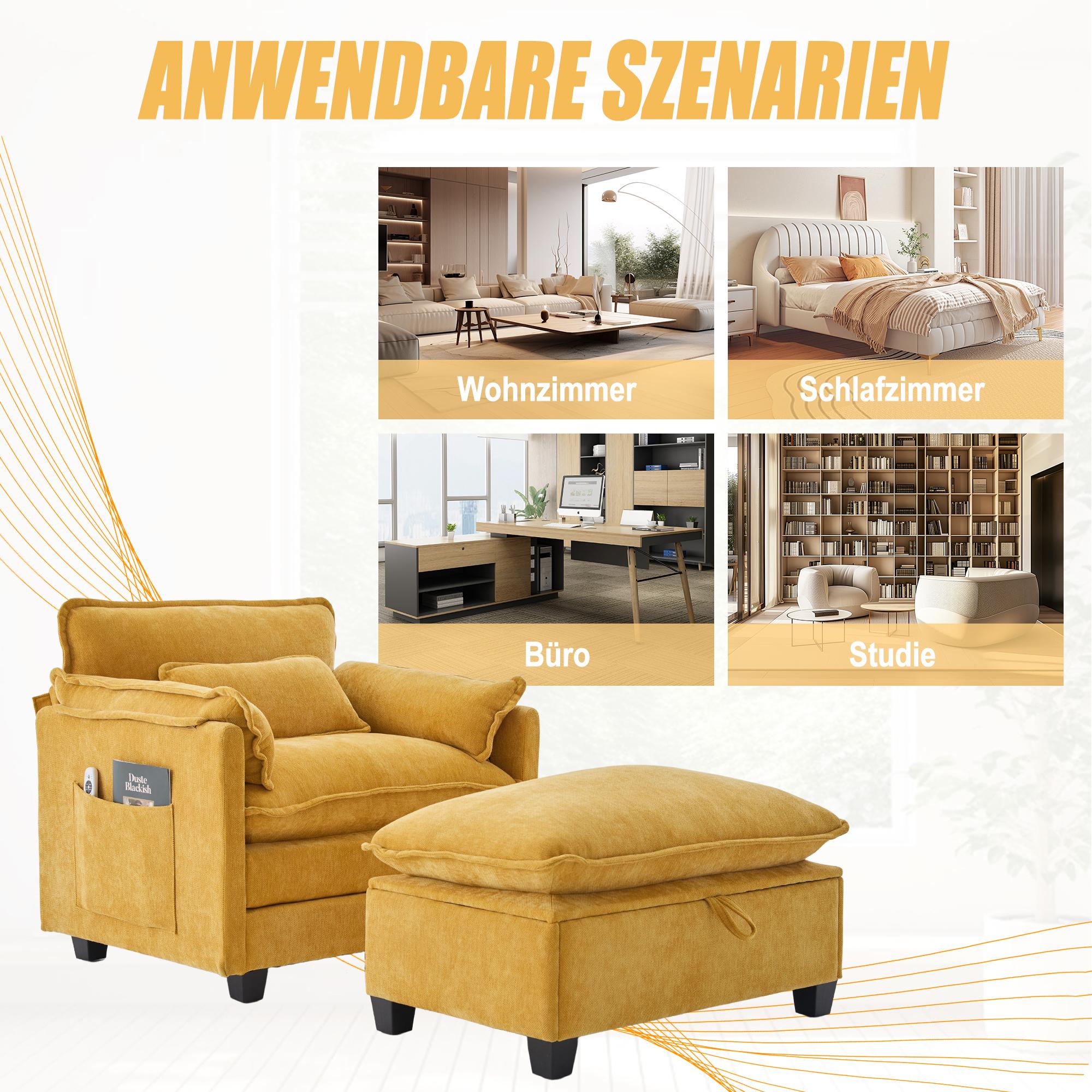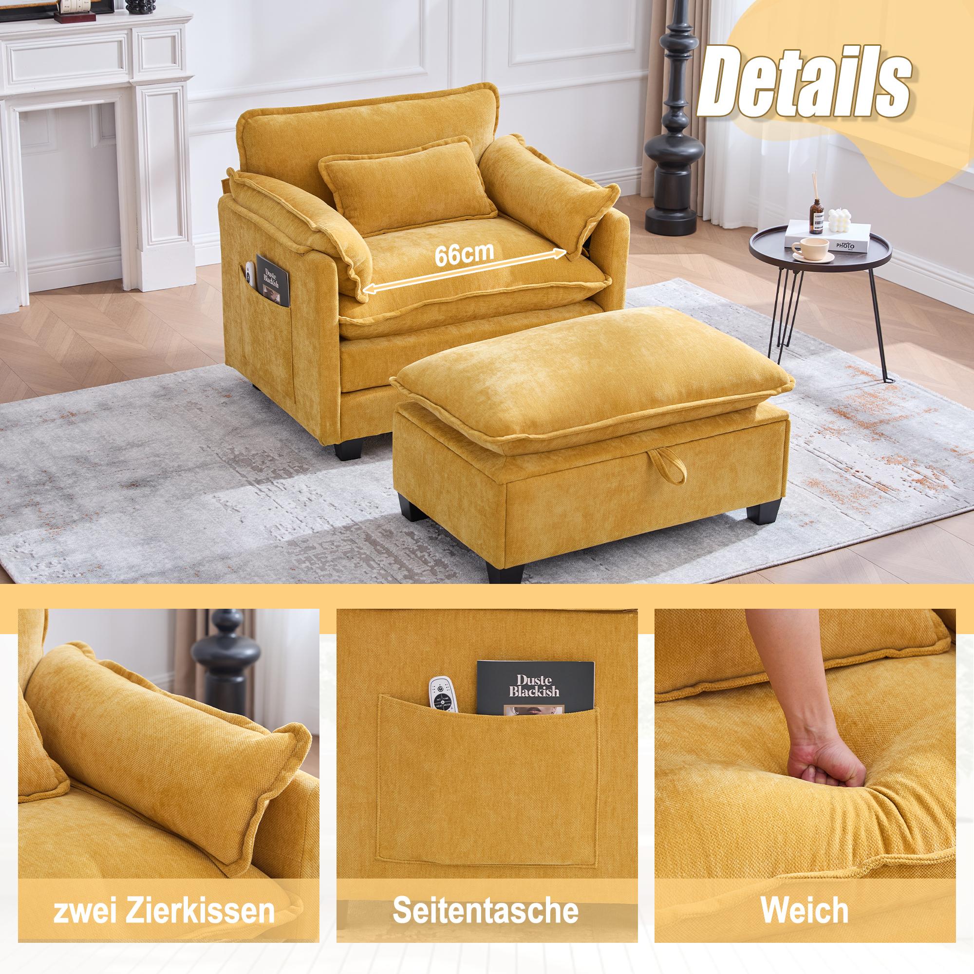 Sillón extragrande de chenilla con otomana y espacio de almacenamiento en beige